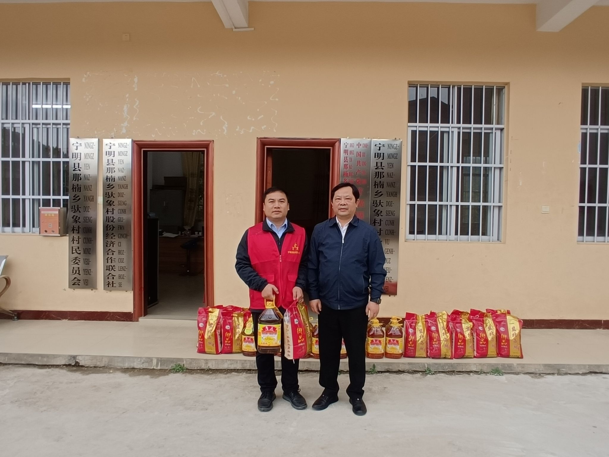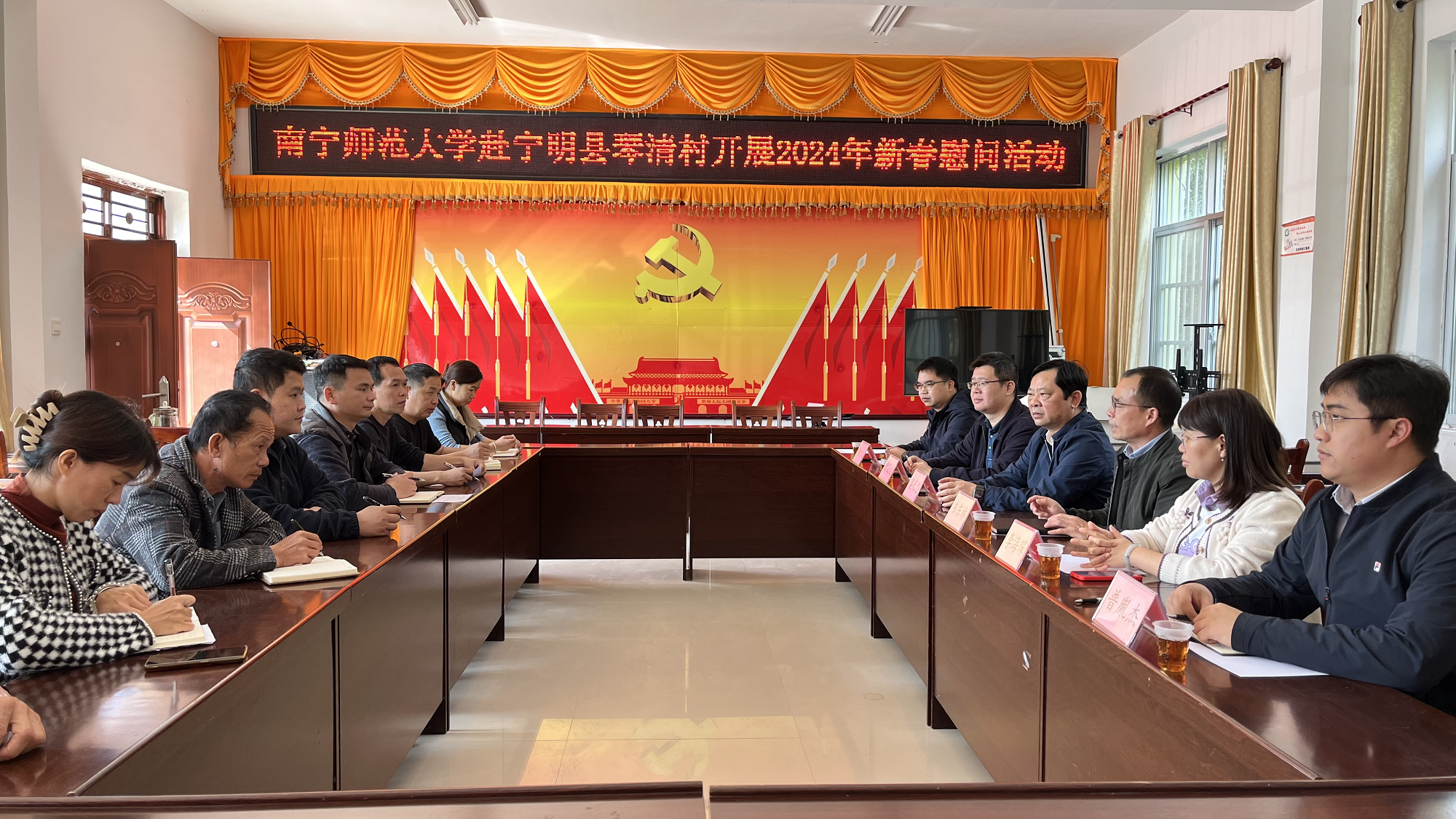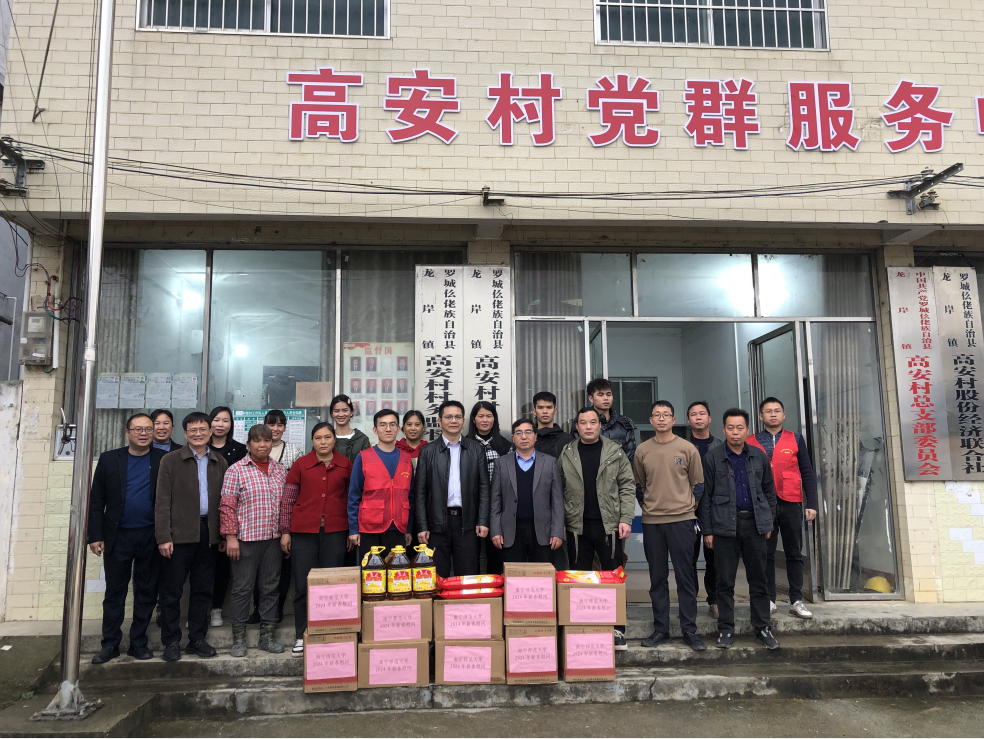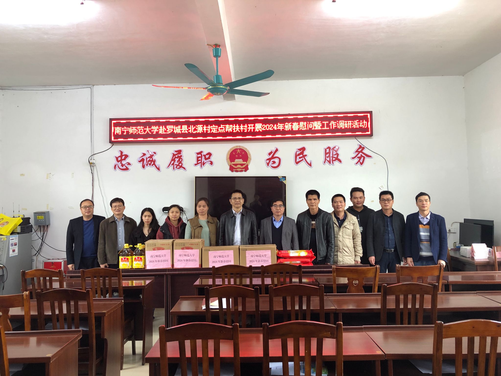 为深入贯彻落实中央和自治区关于巩固拓展脱贫攻坚成果同乡村振兴有效衔接的决策部署,进一步关怀激励驻村干部,凝聚推动乡村振兴的强大合力,近日,在春节即将来临之际,学校党委侯代忠副书记、隆广庆副书记带队赴我校定点帮扶点——宁明县桐棉镇、那楠乡和罗城县龙岸镇12个帮扶村开展春节走访慰问活动。罗城县委常委张文彬以及有关乡镇负责领导陪同慰问。