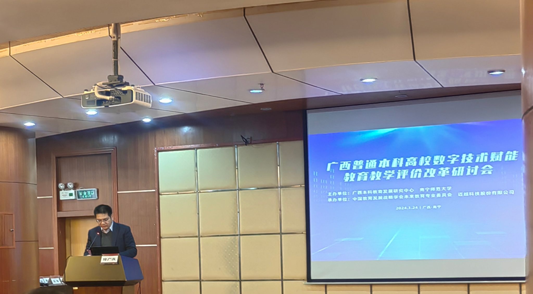 1月24日,由广西本科教育发展研究中心、南宁师范大学主办,中国教育发展战略未来发展专业委员会、迈越科技股份有限公司承办的“广西普通本科高校数字技术赋能教育教学评价改革研讨会”,在我校明秀校区图书馆顺利举行。区内广西大学、广西医科大学、广西民族大学等二十多所本科高校领导及代表出席本次会议。研讨会由广西本科教育发展研究中心副主任、学校党委副书记隆广庆主持。