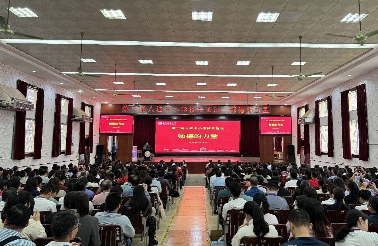 3月18日下午,南宁师范大学第二届“八桂中小学校长论坛”在明秀校区会堂举行。学校副校长龙妮娜、区内外师德教育践行专家学者、来自广西13个地市小学的466名新任校长和后备干部、教师教育学院全体人员参加了线下论坛,聚焦“师德的力量”主题,共同探讨新时代下教师职业行为准则的内涵与实践。论坛由教师教育学院王文蓉副院长主持,并进行同步线上直播。