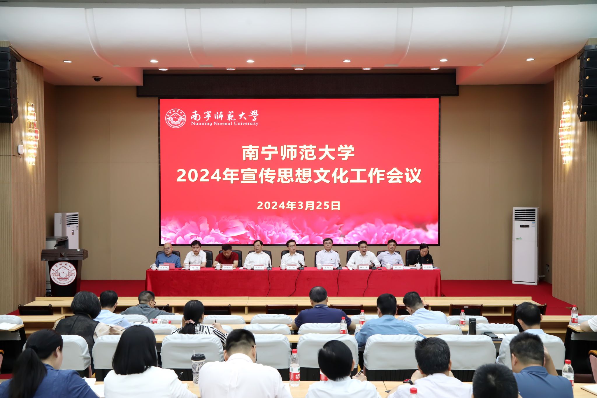 3月25日,我校在明秀校区文星楼301报告厅召开2024年宣传思想文化工作会议。校领导张鹏、李传起、侯代忠、隆广庆、徐书业、赵伟、肖琦、龙妮娜、梁家斌,校党委委员、纪委委员,各二层机构党委书记,各职能部门、教辅单位主要负责人,附属实验学校、幼儿园主要负责人,广西现代教育杂志社有限公司主要负责人参加会议。会议由校长李传起主持。