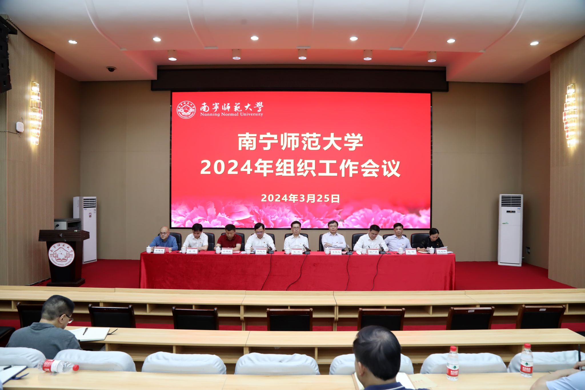校党委副书记侯代忠代表学校党委作组织工作报告。报告回顾了2023年组织工作取得的新成效:一是坚持把习近平总书记关于广西工作论述的重要要求作为根本遵循,坚定拥护“两个确立”、坚决做到“两个维护”的思想根基更加牢固。二是坚持高标准高质量开展主题教育,以学铸魂、以学增智、以学正风、以学促干的劲头更加高昂。三是坚持树导向、优结构、增本领一体推进,干部队伍更加坚强。四是坚持夯基垒台、强基固本,基层党组织政治功能和组织功能更加强大。五是坚持围绕中心、服务大局自觉推动高质量发展,党建引领力保障力更加彰显。报告部署了2024年重点工作任务:一是持续加强党的创新理论武装,贯彻落实好《中共中央办公厅关于巩固拓展学习贯彻习近平新时代中国特色社会主义思想主题教育成果的意见》。二是持续加强干部队伍建设,抓好二级单位党政正职选配,做好干部队伍建设、干部教育培训及干部工作等相关规划、制度的制定和完善。三是持续落实落细党的全面领导,督促指导各单位全面加强党的领导和党的建设工作,严格落实党组织的领导职责,抓好政治建设这一首要任务。四是持续提升基层党建工作质量,推进基层党建“五基三化”深化年行动,修订完善党建工作制度,持续抓好党建“双创”工作,全面提升基层党建整体效能。五是持续加强队伍建设,加强学校党员教育基地和校院两级党校建设,深入实施教师党支部书记“双带头人”培育工程,不断推动党员发展质量提升。六是持续推进党建与事业发展“一融双高”,依托学校“一站式”学生社区探索“党建+”社区运营体系,努力将学生社区打造成为学生党建的前沿阵地。