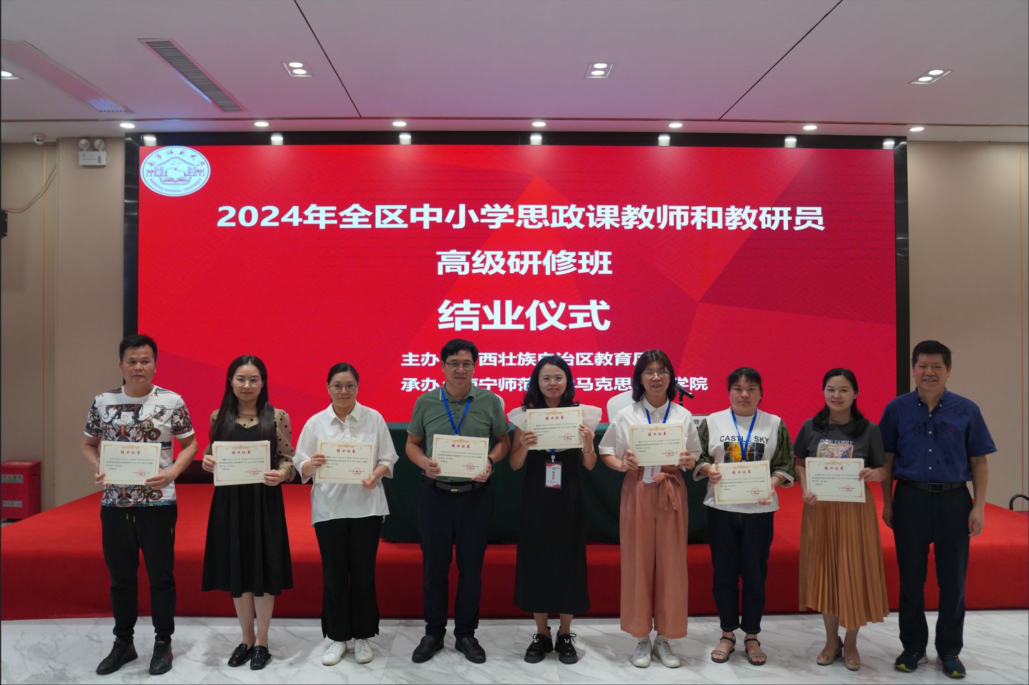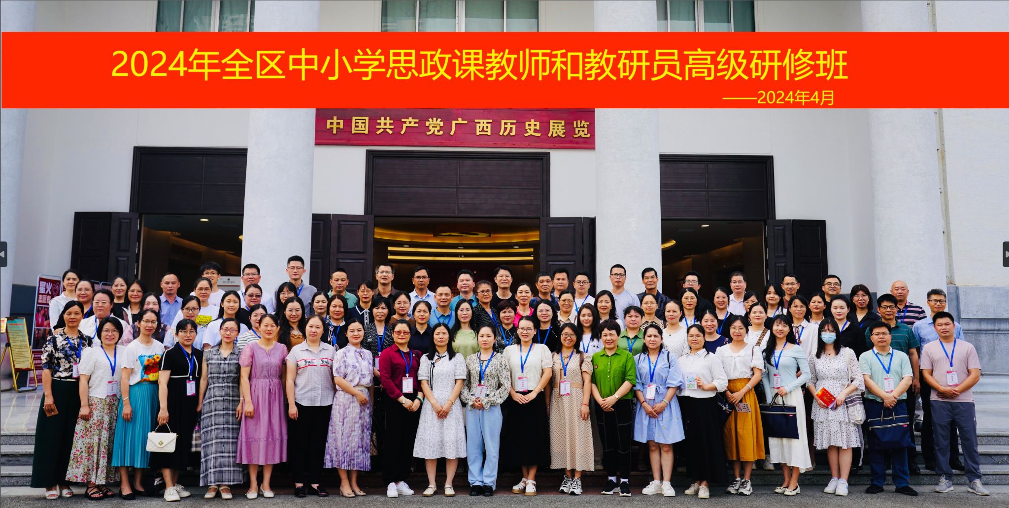 为深入贯彻落实党的二十大精神,进一步落实立德树人的根本任务,全面加强新时代中小学思政课教师和教研员队伍建设,提升全区中小学思政课教师和教研员教育教学及研究能力,4月24-27日,由广西壮族自治区教育厅主办、我校马克思主义学院承办的2024年全区中小学思政课教师和教研员高级研修班在南宁成功举办。