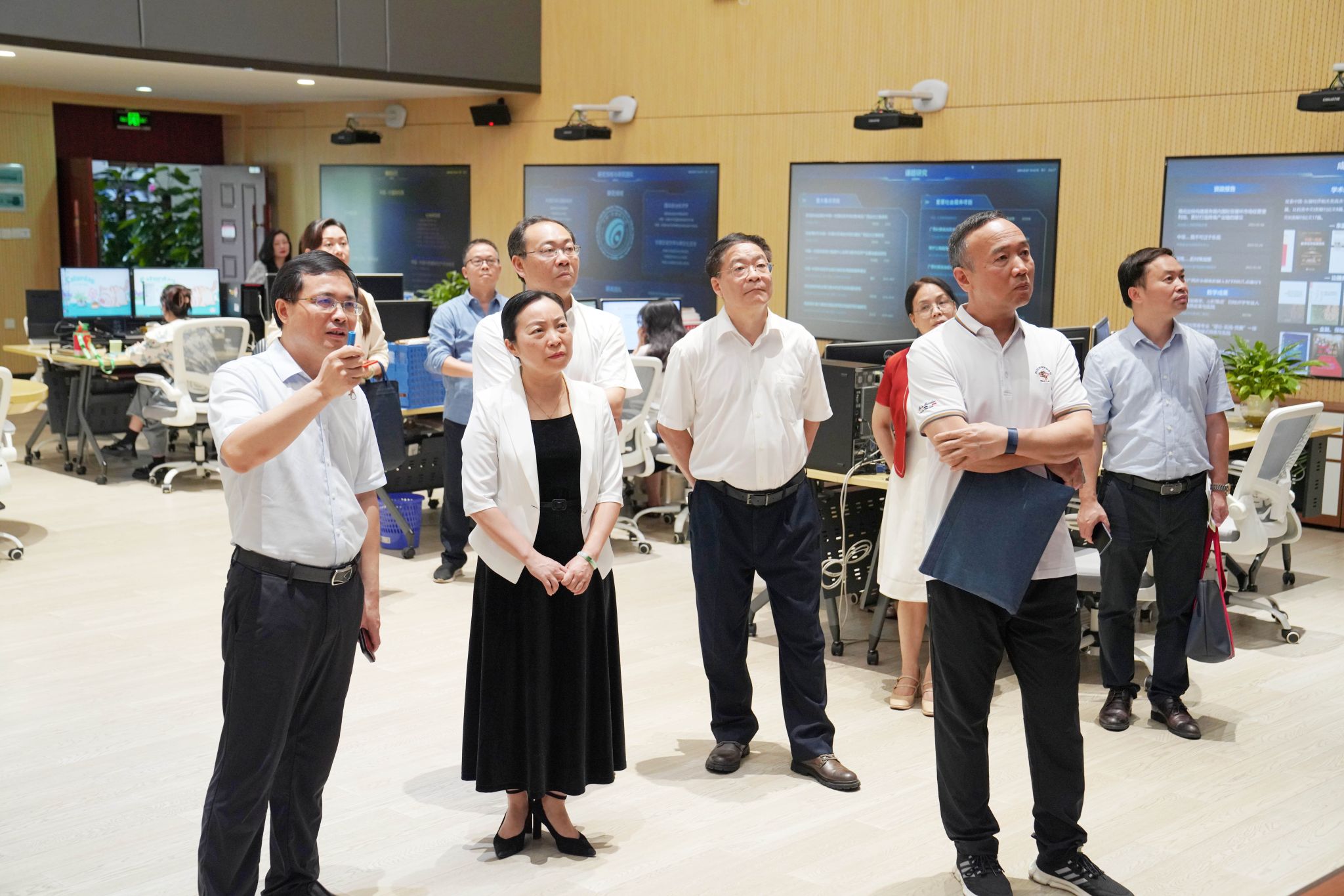 在广西大学副校长于文进与广西大学中国—东盟研究院相关领导人员陪同下,我校一行参观了中国—东盟信息港大数据研究院、广西大学中国—东盟研究院十大国别所展示馆。参观过程中,双方就阵地建设、成果采集、数据分析等相关工作进行了交流。