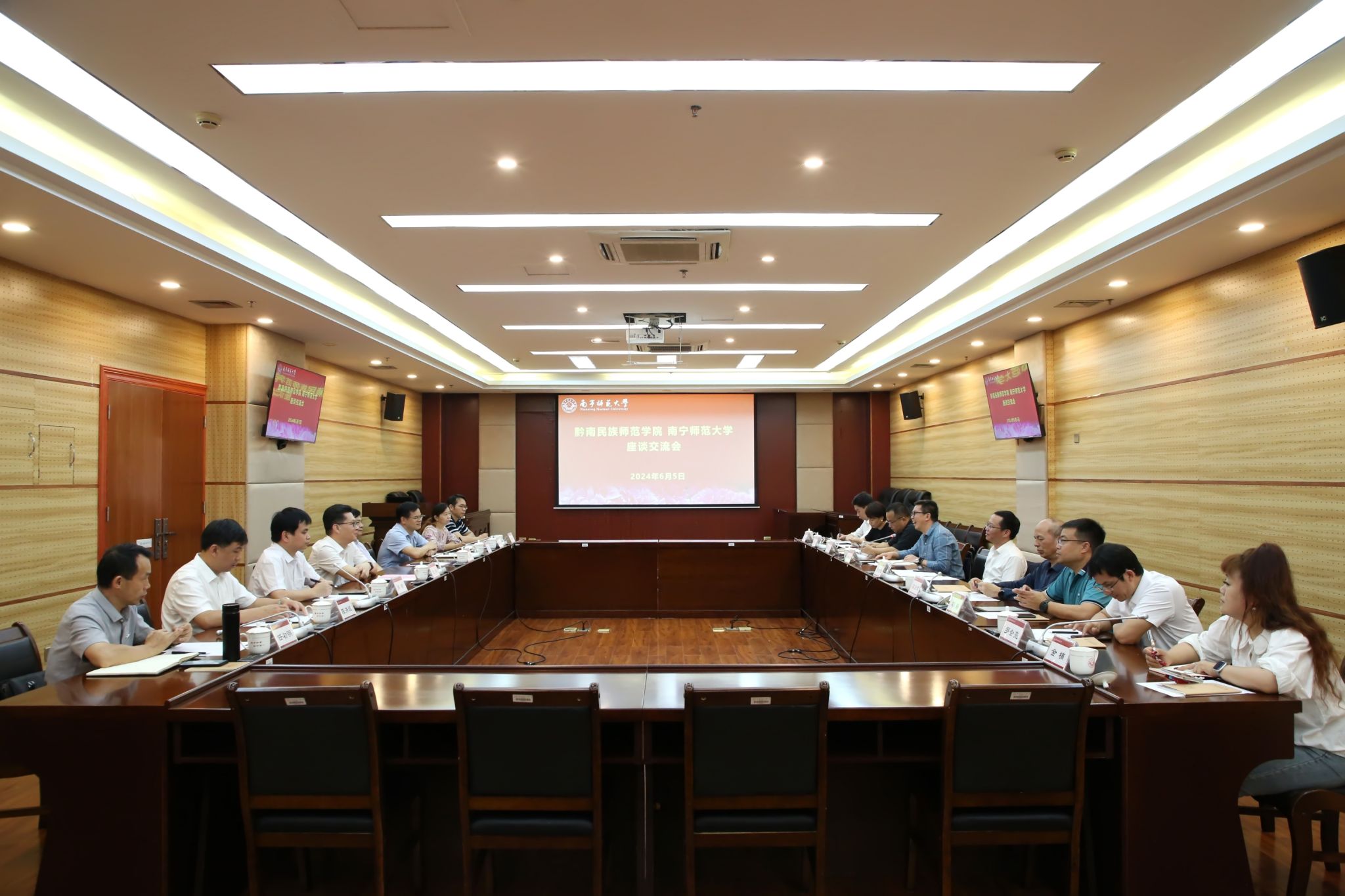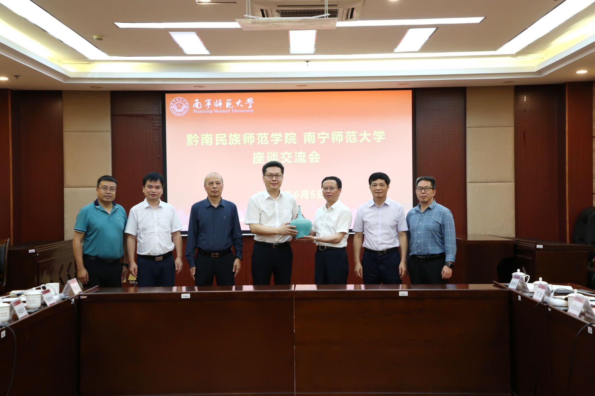 6月5日上午,黔南民族师范学院党委书记熊世桓,校长石云辉,副校长李泽平、邓海率党政办公室、科研处、人事处、教务处等部门相关负责人一行9人来我校调研交流。我校党委书记张鹏,副校长赵伟、肖琦热情接待了熊世桓一行。学校党办校办、人事处、教务处、科研处、政策法规与发展规划处等相关职能部门负责人在明秀校区图书馆2楼会议室参加座谈会。座谈会由肖琦主持。
