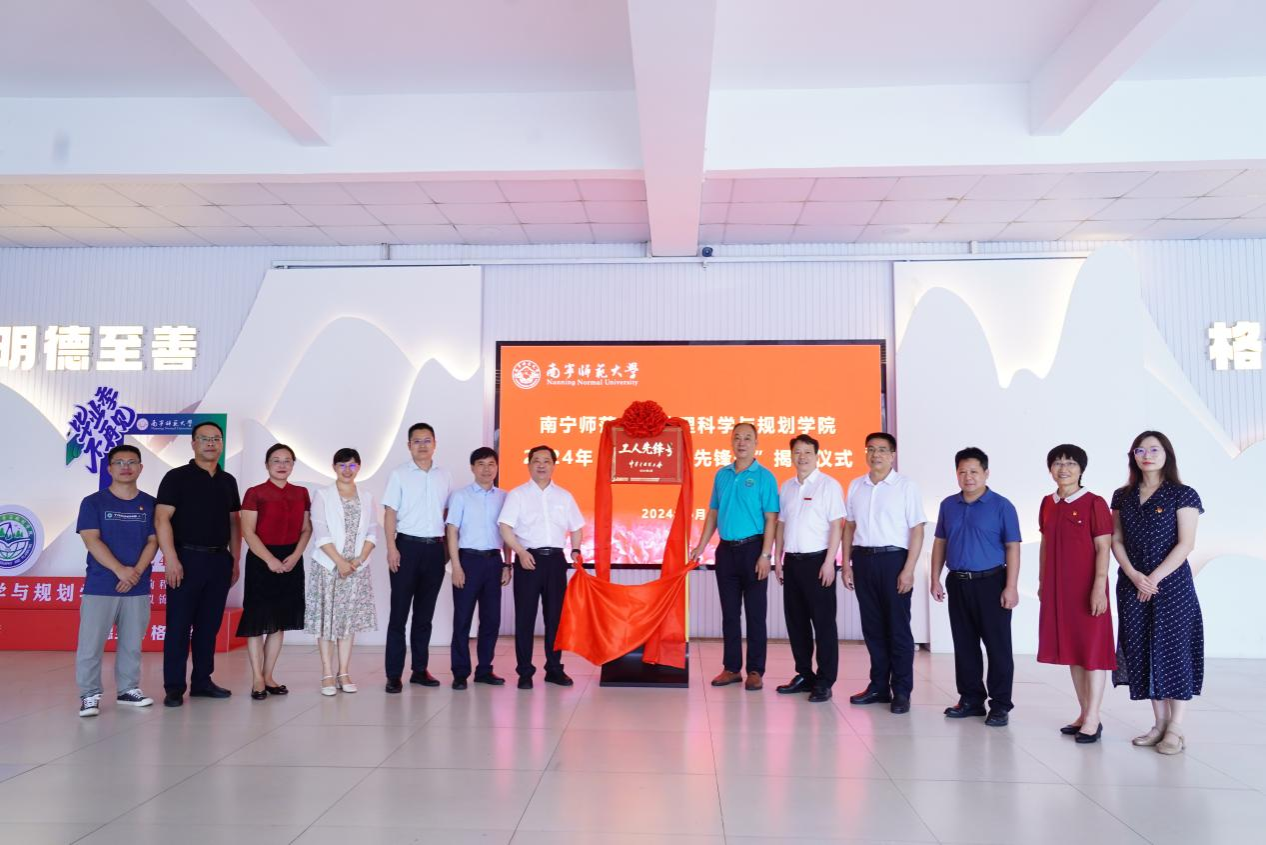 6月11日,学校在武鸣校区地源楼为地理科学与规划学院荣获的2024年“全国工人先锋号”举行揭牌仪式。学校党委副书记、工会主席侯代忠,校工会、组织部、宣传部等部门负责人,地理科学与规划学院领导班子成员及教师代表,地理与海洋研究院和环境与生命科学学院代表参加活动。