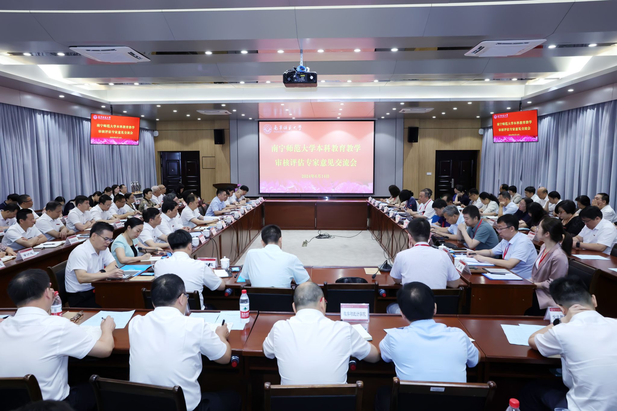 6月14日上午,我校在武鸣校区召开本科教育教学审核评估专家意见交流会。审核评估专家组组长王占仁教授、副组长张新民教授及全体入校审核评估专家组成员,自治区教育厅副厅长闫炳辰,自治区教育厅高教处处长、学位办主任傅源方,中国西部高等教育评估中心副主任徐菲,我校党委书记张鹏、校长李传起等在家校领导,各职能部门负责人,各学院党委书记、院长,本科教育教学督导代表参加会议。会议由张新民主持。