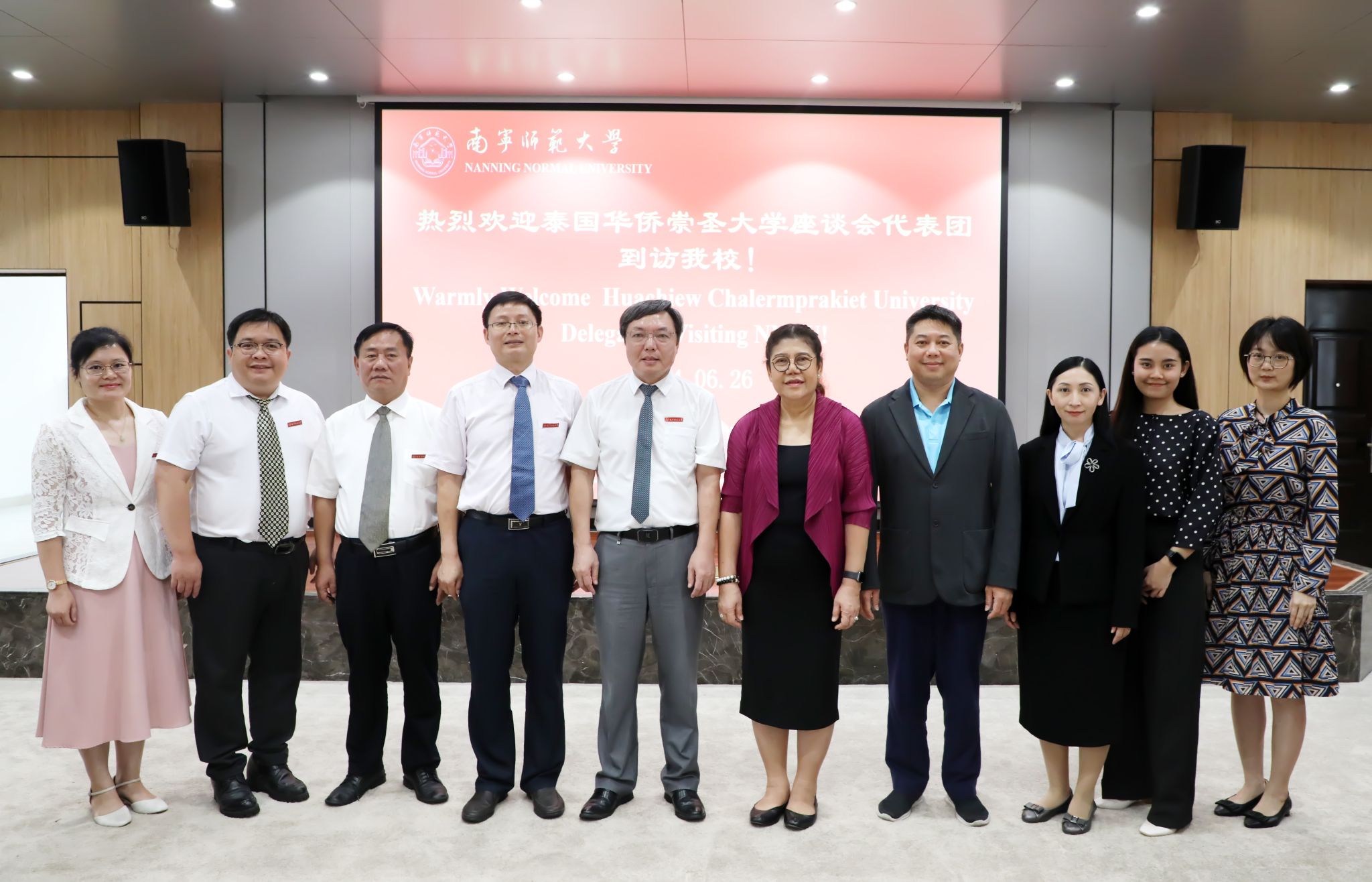 6月26日上午,泰国华侨崇圣大学校长Uraipan Janvanichyanont一行到我校交流访问。学校李传起校长,国际交流合作处(国际教育学院)、物流管理与工程学院、新闻与传播学院、法学与社会学院相关负责人在武鸣校区行政楼127会议室会见了泰国华侨崇圣大学代表团。