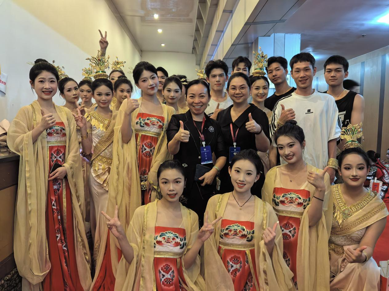 本次大赛从民航服务形象与礼仪、民航知识与英语、民航安全服务技能、团体表演四个赛项展开团体赛的竞技。旅游与文化学院高度重视,经过层层选拔,专业老师进行一个多月的专业技能培训指导和赛前模拟来帮助参赛学子能在比赛中取得佳绩。在团体表演赛中,舞蹈队的25名学生精彩演绎舞蹈作品《缅花·盛唐》,展现中国唐朝传统舞蹈与缅甸传统舞蹈的交相融合,体现中国大唐盛世的境况;在民航服务形象与礼仪比赛中,我校参赛队伍通过舞蹈和走秀的方式主要展现东南亚文化和岭南文化的交流,最终我校有9名选手晋级;在民航知识与英语、民航安全服务技能比拼上,选手们用扎实的理论知识、精湛的技能水平和专业的礼仪形象诠释了“匠心筑梦新时代、精技强能向未来”的大赛主题精神。