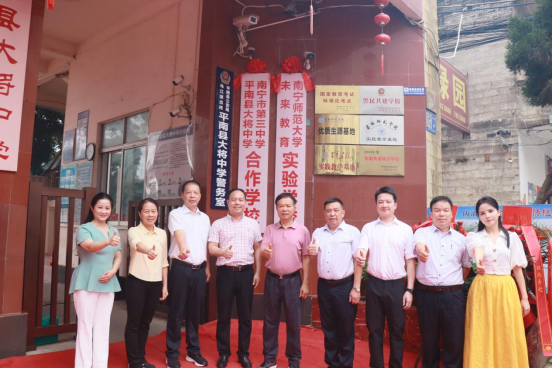 7月28日,我校未来教育研究院与贵港市大将国际学校举行签约仪式。未来教育研究院院长陆云、副院长利云以及贵港市教育局副局长杨兵、广西大将集团董事长李荣坚、大将集团副董事长李政、大将国际学校第一书记崔永胜等出席签约仪式。