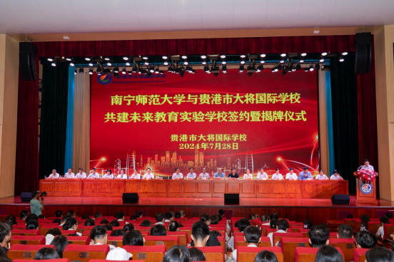 贵港市大将国际学校是继之前十二所签约学校基础上的第十三所“南宁师范大学未来教育实验学校”。大将集团下属另一所平南县大将学校,也于前一天签约成为了南宁师范大学未来教育实验学校。