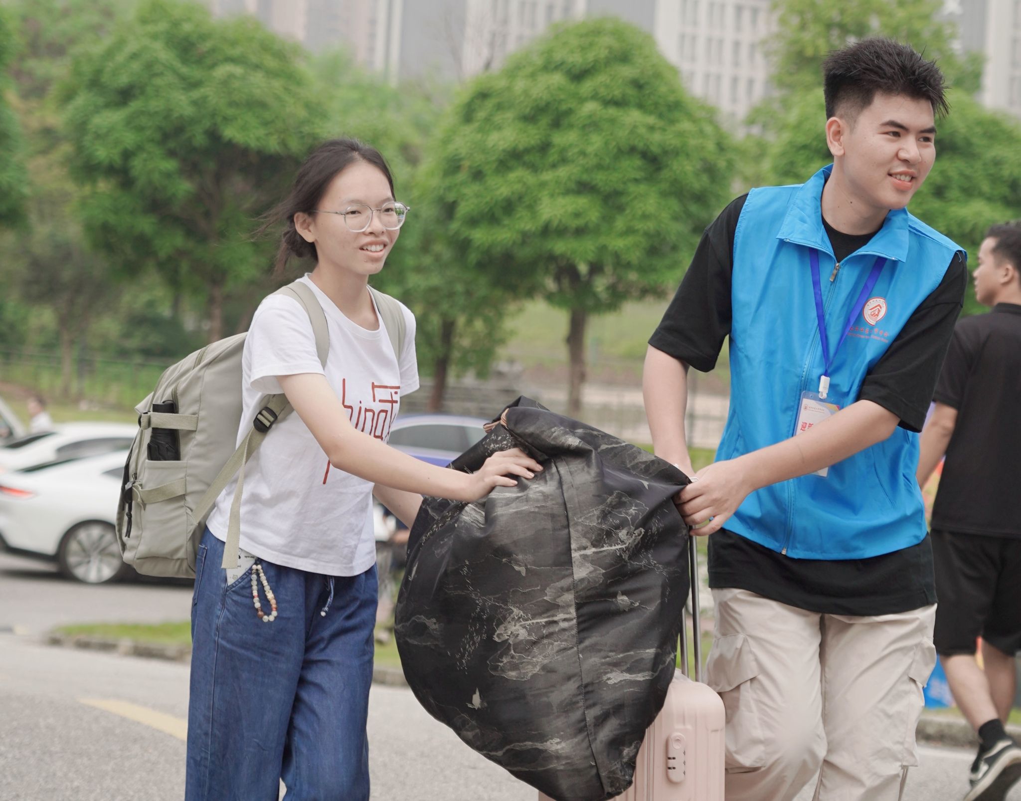 在新生报到现场,学工部(处)、各学院贴心制作了精美的欢迎背景板、欢迎牌,表达对新生的祝福和期许;校团委在校园主干道、十字路口、新生宿舍区等区域设置了志愿服务点,为新生引导路线、搬运行李;在各学院的迎新工作点,学院领导、新生班主任、辅导员与新生亲切交谈,倾听新生们的感受,解答新生们提出的问题;志愿者们热情为新生办理报到手续、发放报到材料、解答疑惑。