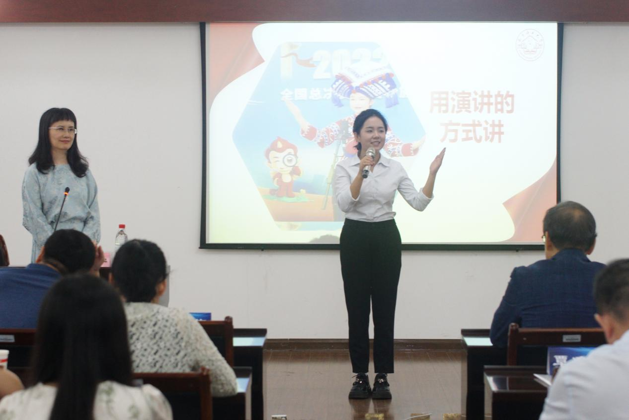 在宪法实践教育方法展示环节,南宁师范大学学生和研究生团队参与示范教学。