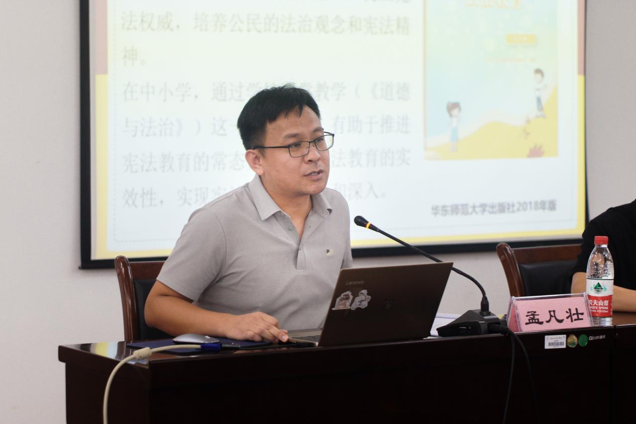 华东师范大学法学院副教授孟凡壮,做了题为“通过案例教学推进青少年宪法教育”的主题发言。