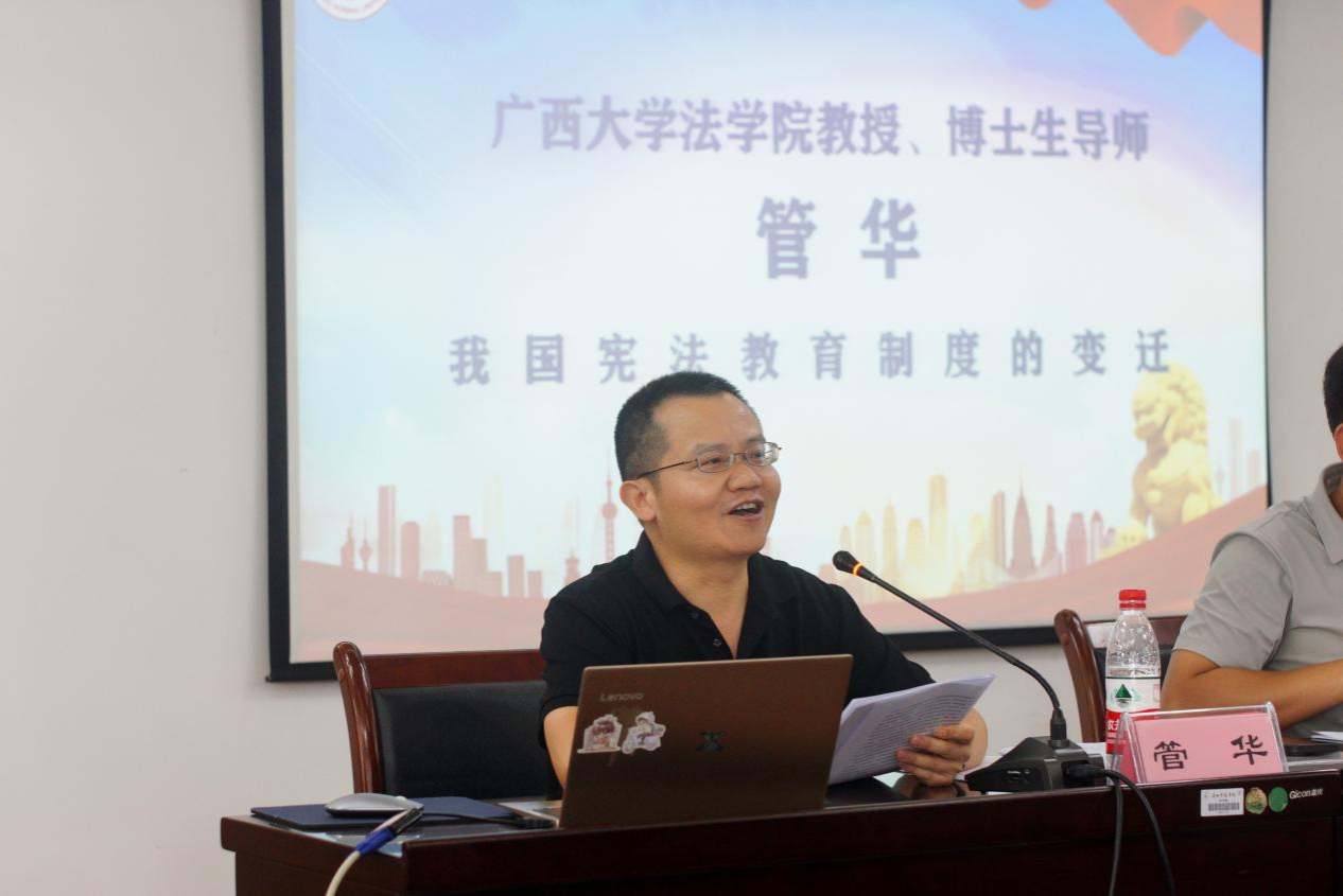 广西大学法学院教授管华做了题为“”我国宪法教育制度的变迁”的主题发言