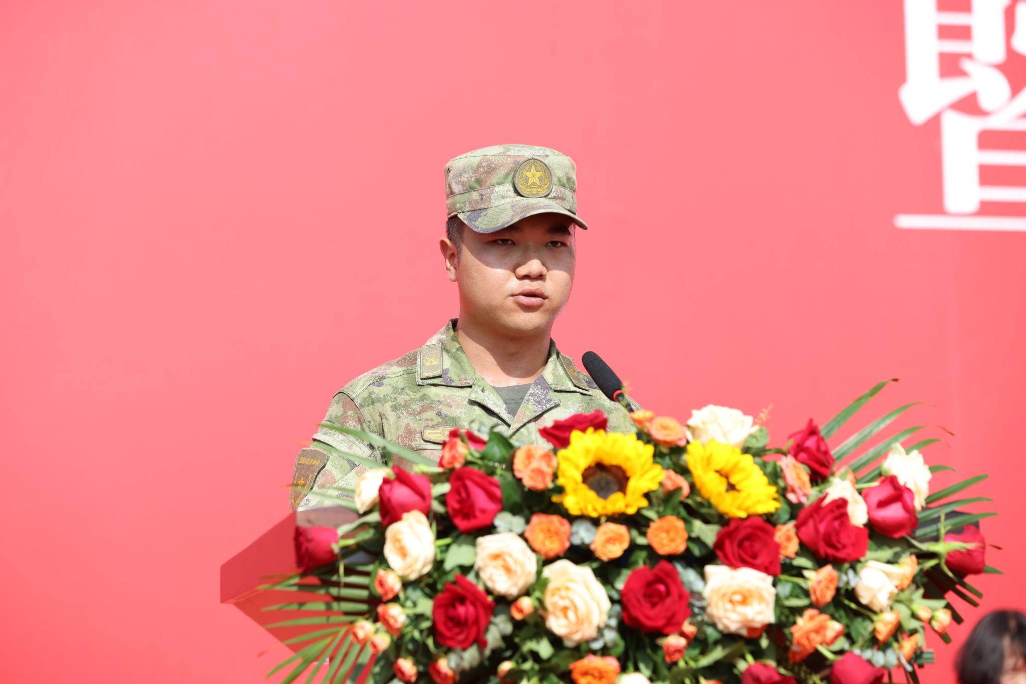 学生军训教官代表滕万林在武鸣校区发言