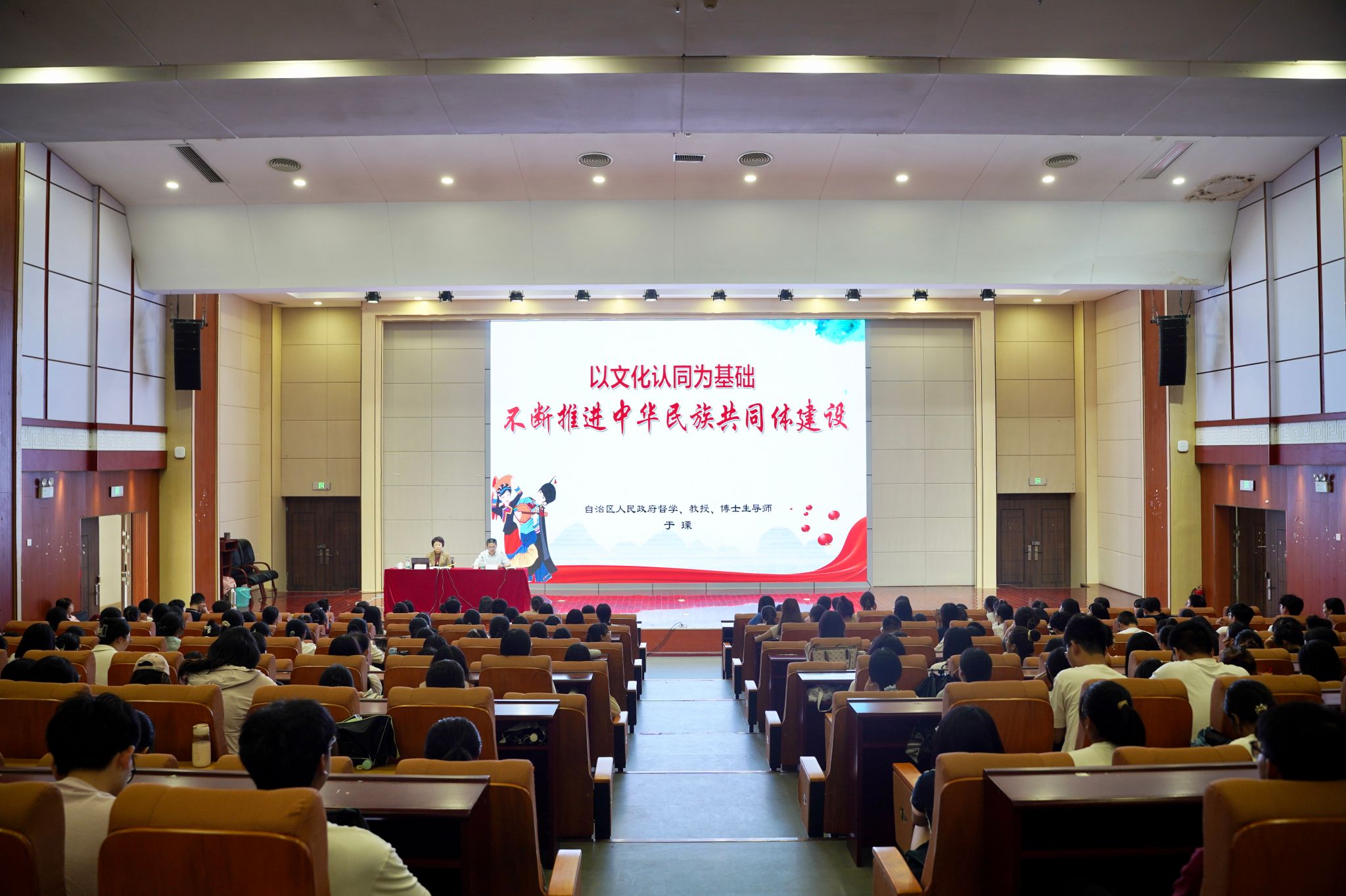 为深入学习习近平总书记关于《铸牢中华民族共同体意识推进新时代党的民族工作高质量发展》的重要论述,贯彻落实中央统战部、中央宣传部、教育部、国家民委共同印发的《关于加强铸牢中华民族共同体意识理论研究体系建设的意见》,加强学校铸牢中华民族共同体意识教育,2024年9月27日下午,我校马克思主义学院邀请广西中华民族共同体意识研究院学术委员会主任、自治区人民政府督学、广西老教授协会会长、原广西师范学院党委书记于瑮教授,为师生作题为“以文化认同为基础 不断推进中华民族共同体建设”的学术讲座。讲座由南宁师范大学党委副书记隆广庆主持,马克思主义学院、法学与社会学院、教育科学学院、新闻与传播学院师生等参加了此次讲座。