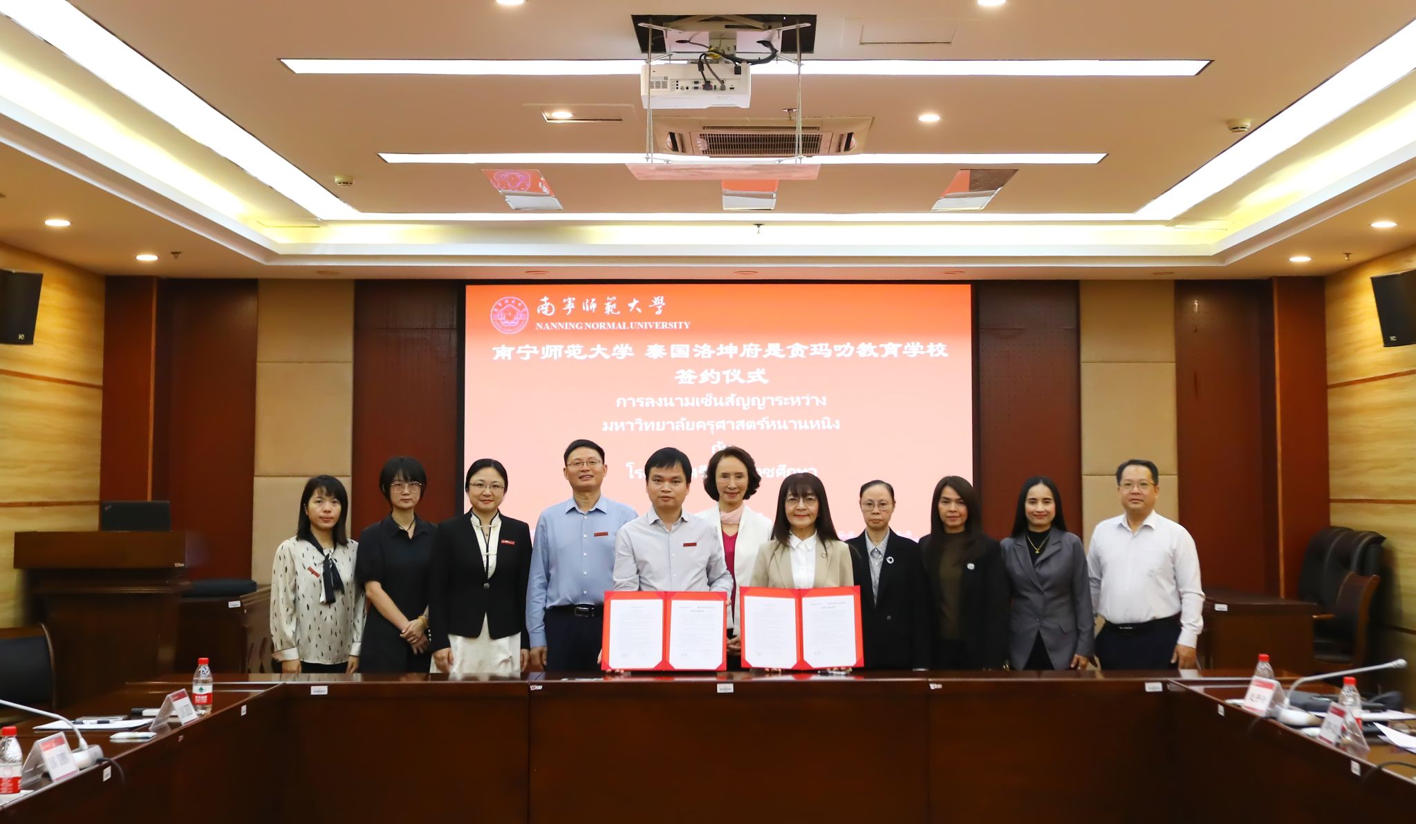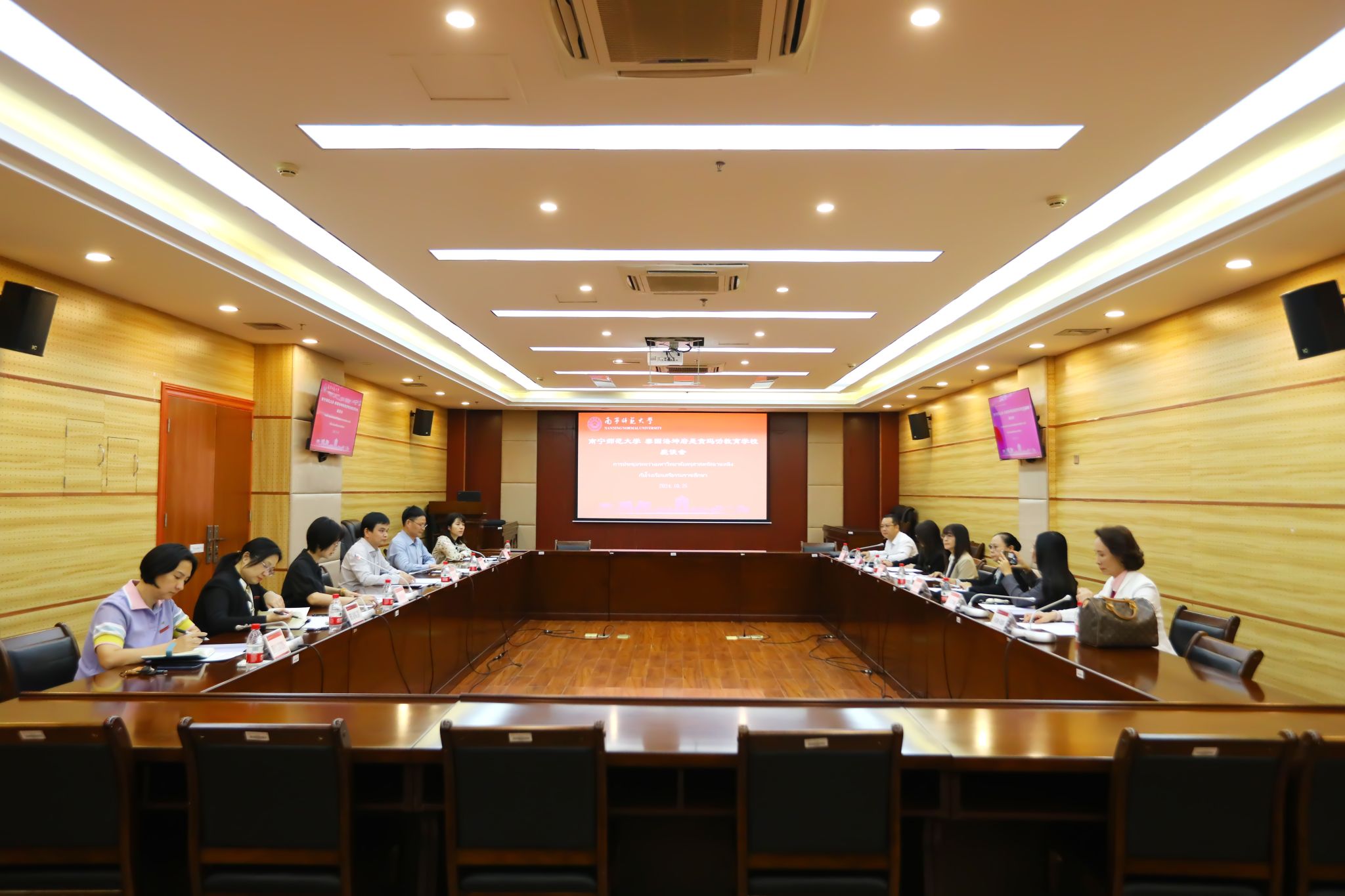 双方围绕教师培训、学生实习等方面合作进行了深入交流。会谈结束后,我校与泰国洛坤府是贪玛叻教育学校签订了教育合作协议。