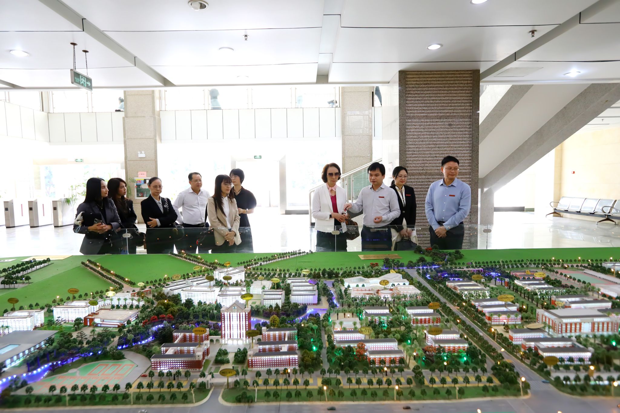 会前,肖琦陪同代表团一行参观了学校泰语中心、外语楼国际文化交流展示区、学校沙盘及教师教育展。