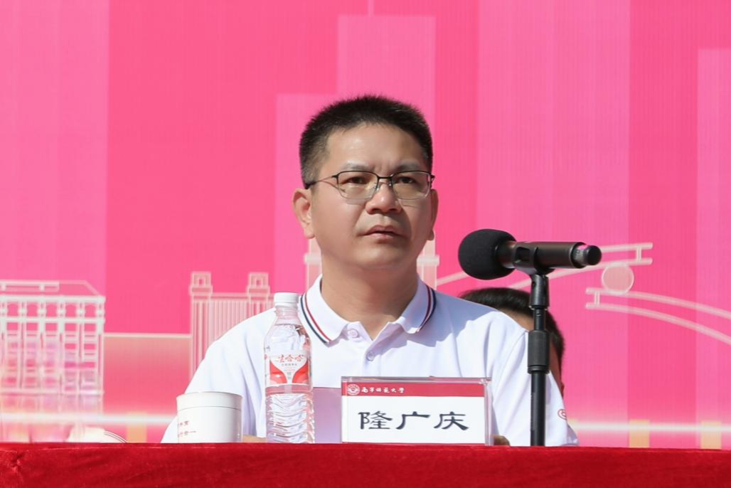 校长李传起致开幕词。李传起代表学校向全体运动员、裁判员和运动会工作人员致以诚挚的问候,向筹办本次校运会的体育与健康学院及相关单位表示衷心的感谢。李传起指出,体育工作是学校工作的重要一环。作为国家教育部建设田径、篮球、足球高水平运动队的高校,学校发挥广西体育教师人才培养基地的平台作用,积极开展教学科研、社会服务和对外交流。学校作为广西唯一高校入选中国高等教育学会2024年“体健融合”项目,学校男子篮球队在今年的中国大学生篮球联赛中挺进全国32强,我校学子入选中国大学生篮球联赛全明星。相信未来在更大更广阔的体育竞技舞台上,将会闪耀着越来越多南师学子的身影。校运会集中展现着南宁师大的时代风貌和育人成果,更检验着当代大学生的身体素质和精神追求。本届运动会是在我校建成博士授权单位的高起点上举行的,希望运动员们发扬更高、更快、更强、更团结的体育精神,遵守规则、尊重对手、尊重裁判、尊重观众,顽强拼搏、勇于挑战。同时也希望通过校运会,进一步引导全校师生积极参与全民健身,在体育运动中锻造健康体魄、锤炼精神品质、涵养积极人生,共同为学校高质量发展作出新的更大贡献。