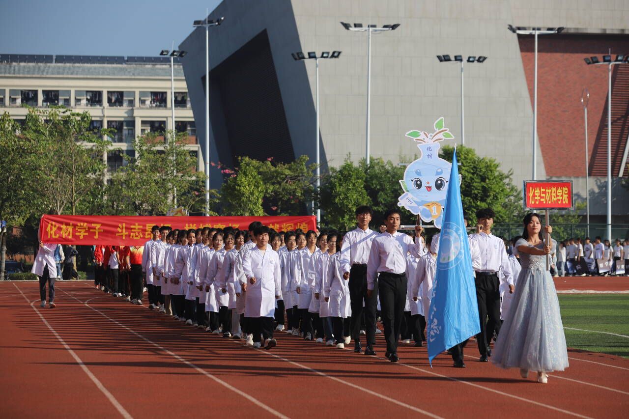 伴随着激昂的《运动员进行曲》,红旗护卫队、各学院方块队迈着矫健整齐的步伐、喊着充满斗志的口号依次入场,展现出我校师生蓬勃的朝气与顽强拼搏、昂扬向上的精神风貌和对这场体育盛会的期待与热爱之情。