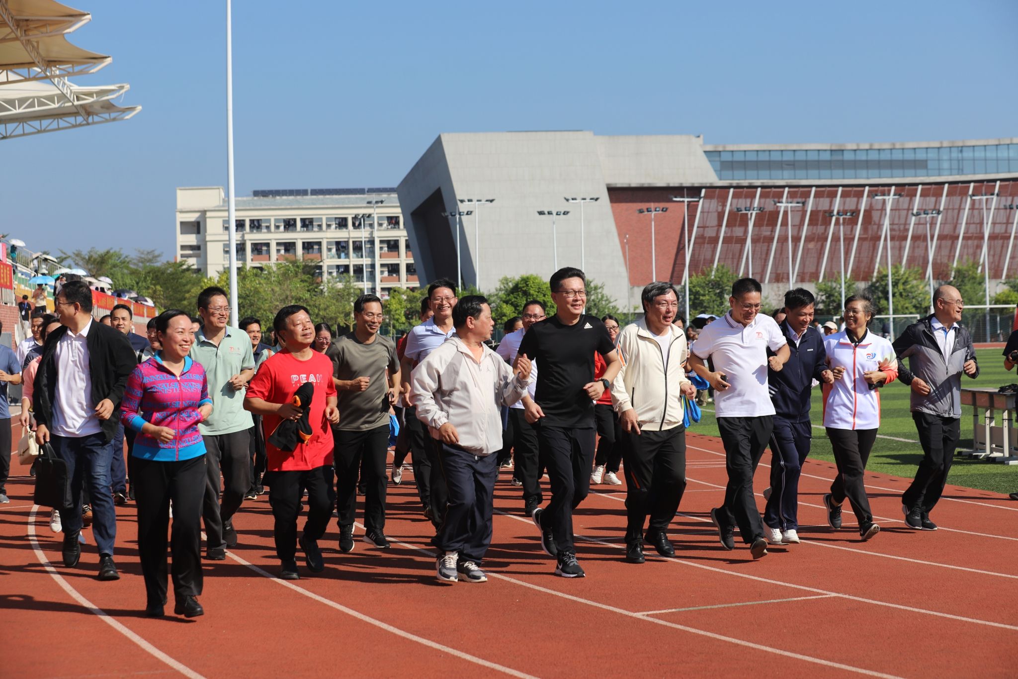 开幕式结束后,校领导带领处级干部在田径场上开展2024年南宁师范大学校园健康跑启动仪式,并绕田径场进行200米健康跑。