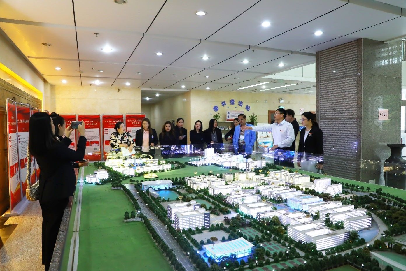 座谈会前,国际交流合作处/国际教育学院相关负责人陪同代表团参观了学校沙盘、教师教育成果展。