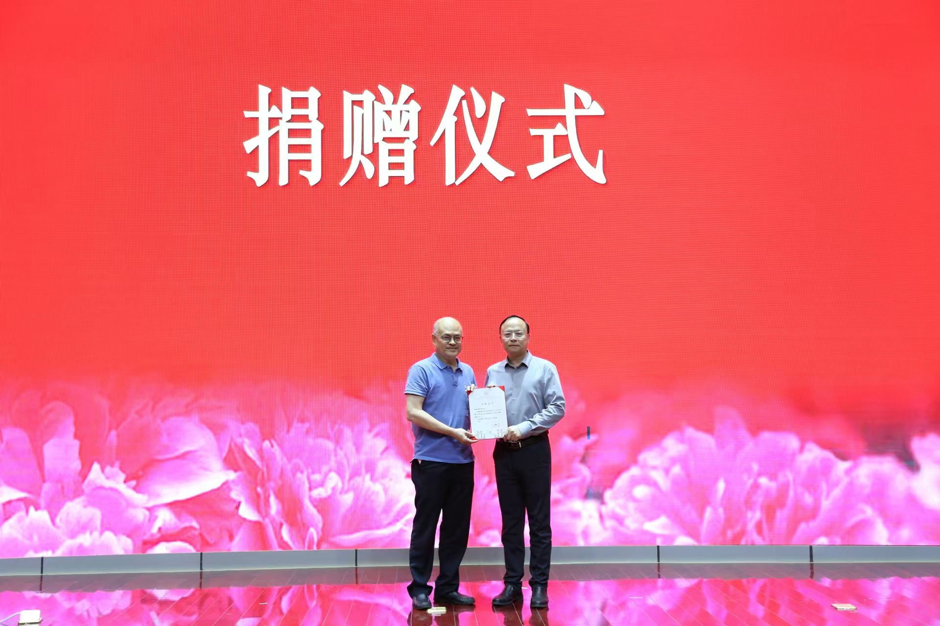 随后,陈小建、陈映红校友向学校捐赠摄影作品、纪念册,黎江影校友向学校捐赠诗集,梁家斌代表学校接受捐赠并颁发证书。