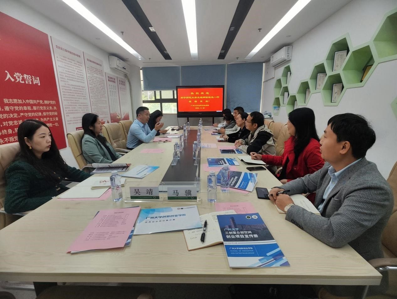 当日下午,调研组一行抵达广东工业大学,受到了该校党委副书记陈卓武的热情接待。在座谈会上,陈卓武详细介绍了该校“1+2+N”高质量创新创业特色人才培养生态,以及依托国家级创新创业教育实践基地——工大创谷所取得的成绩。该校创新创业学院副院长许金镇带领调研组实地参观了广工创新创业教育成果展示厅、“工大创谷”创新班实训室和乡村振兴创新创业工作室等特色区域。