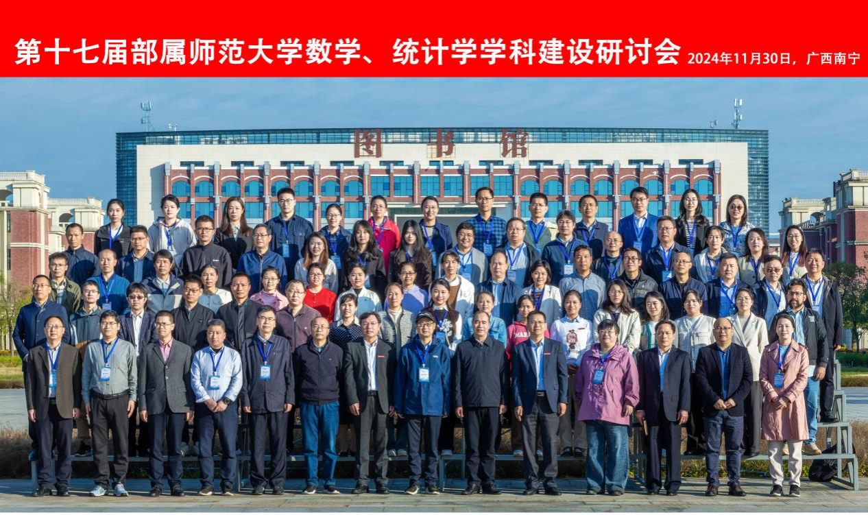 11月30日,第十七届部属师范大学数学、统计学学科专业建设研讨会在我校召开,本次研讨会的主题是“探讨师范大学数学及统计学学科发展的困境和出路,交流公费师范生本硕衔接的培养策略”。本次会议由西南大学数学与统计学院主办,南宁师范大学数学与统计学院承办,来自北京师范大学、华东师范大学、东北师范大学、华中师范大学、陕西师范大学、西南大学等6所部属师范大学数学学院党政主要领导、老师以及南宁师范大学数学与统计学院全体教师齐聚一堂。学校校长李传起代表承办方致辞,会议开幕式由学校党委副书记隆广庆主持。