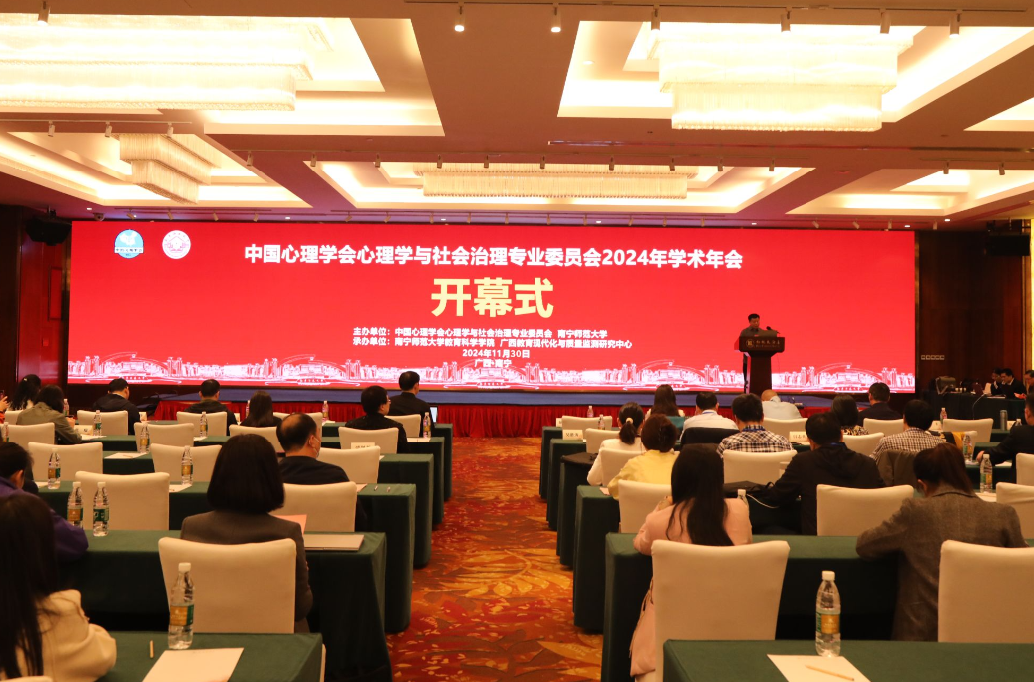 11月29日至12月1日,由我校与中国心理学会心理学与社会治理专委会共同举办、教育科学学院和广西教育现代化与质量监测研究中心承办的中国心理学会心理学与社会治理专业委员会2024年学术年会顺利举行。会议以“社会治理现代化的心理学贡献”为主题,吸引了来自全国二十余个兄弟院校的专家学者和研究生代表共150余人参会。大会设主会场1个,分会场5个,包括10个大会报告、29个专题报告和57场分组报告。