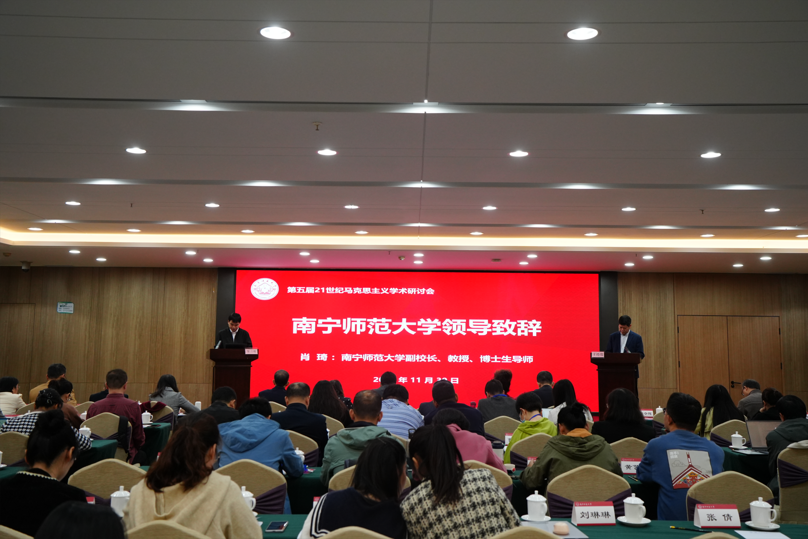 为深入学习习近平总书记对新时代马克思主义理论研究和建设工程的重要指示精神,积极探讨中国式现代化理论,推动21世纪马克思主义理论创新发展研究,11月30日,我校在南宁举办第五届21世纪马克思主义学术研讨会。来自北京大学、山东大学、华南师范大学、内蒙古大学、电子科技大学、安徽大学、福建师范大学、广西大学、广西师范大学、广西民族大学等区外近30所高校的120多位专家学者和一线教师、研究生参加研讨会。