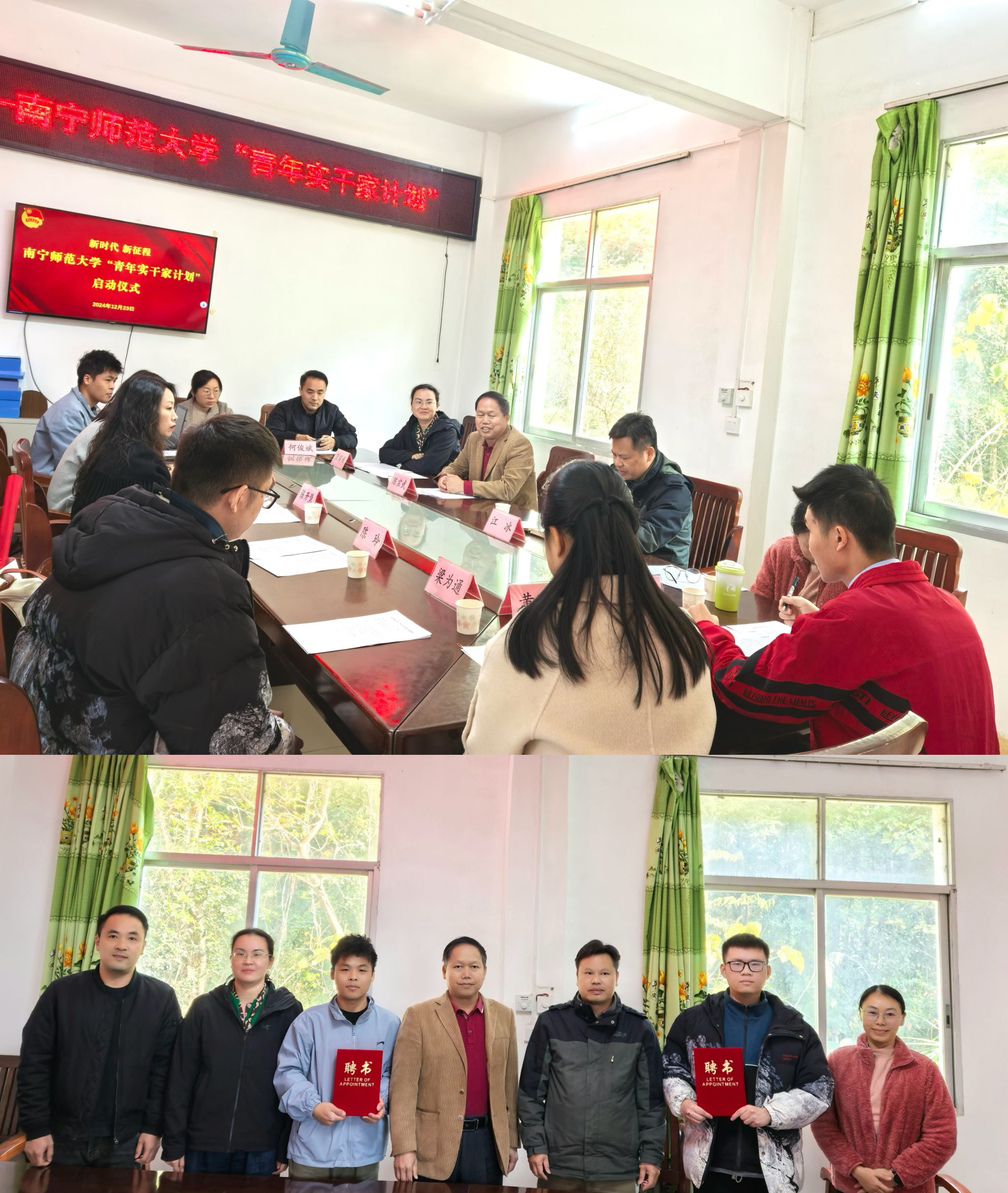 为深入贯彻落实习近平总书记关于青年工作的重要思想,全面贯彻党的二十大和二十届三中全会精神,落实团中央和共青团广西区委“青年实干家计划”工作部署,12月23日,我校在宁明县那楠乡政府举办南宁师范大学2024年“青年实干家计划”启动仪式,宁明县那楠乡党委负责人,校学生工作部、校团委负责人以及我校“青年实干家计划”入选成员参加了启动仪式。