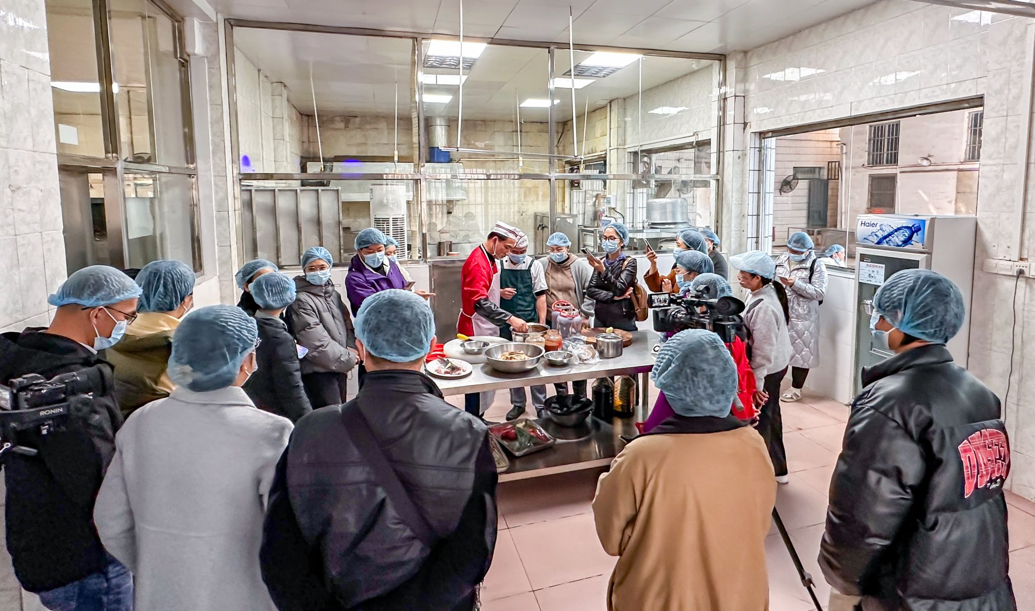 为了喜迎2025年新年到来,进一步打造幸福和谐校园,弘扬中华传统饮食文化,12月20日下午,校工会与后勤基建处膳食科联合在我校明秀校区食堂举办心系职工、办好“食”事系列活动之跟着厨师学做年夜菜活动。