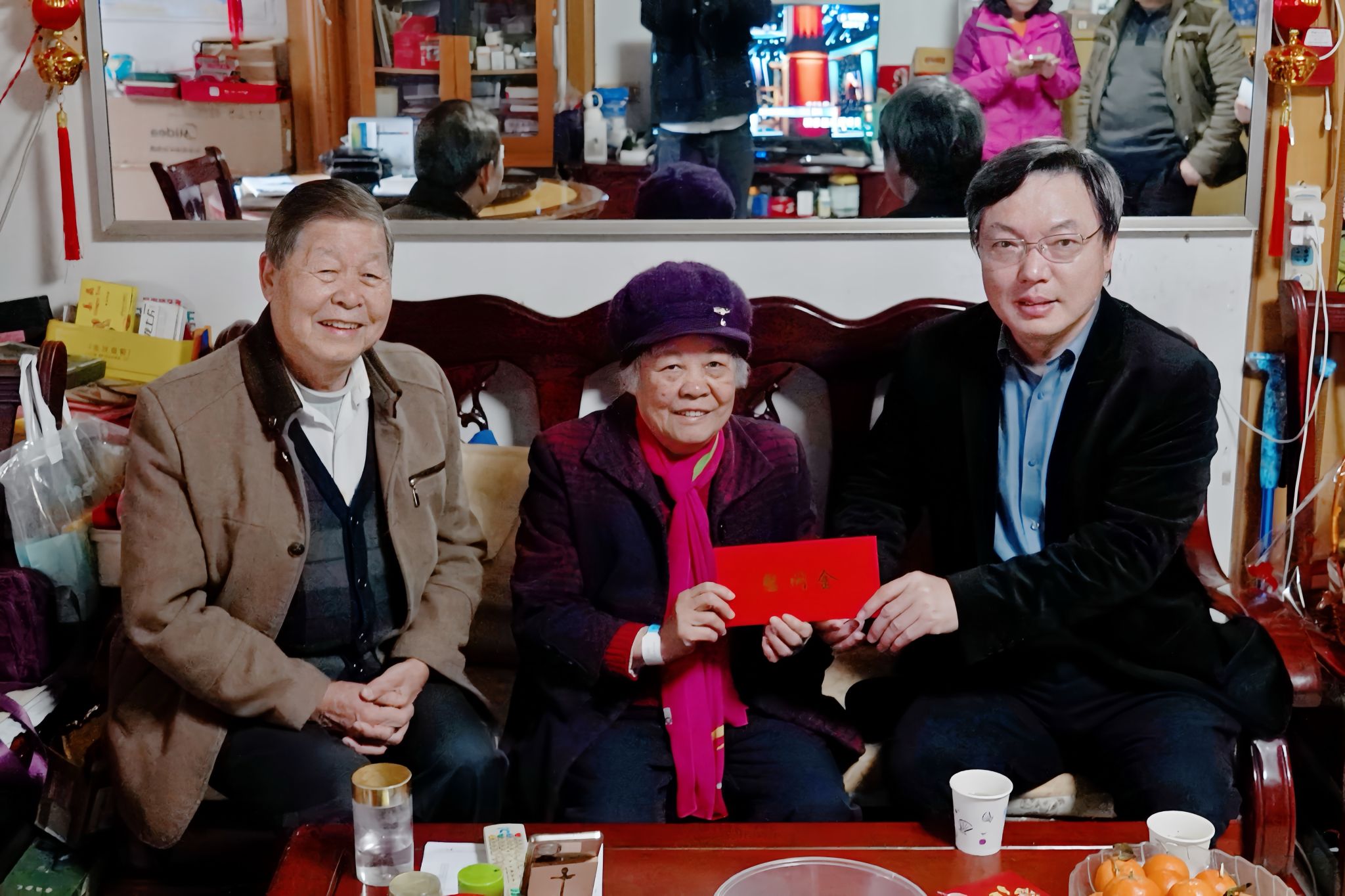 在2025年新春佳节即将来临之际,1月7日至11日,学校领导张鹏、李传起、隆广庆、唐荣双、李美清分别带领党办校办、组织部、宣传部、人事处、离退休教职工服务中心和建政校区管理委员会等部门负责人,上门走访慰问离退休老党员、老干部和生活困难退休教职工代表安育华、黄亢美、郭家鼎、凌泉方、李迎十、农秀英、刘金元、吴中文、汪为明、崔柳生。