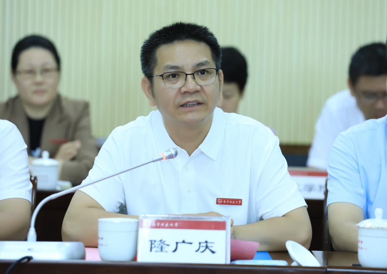隆广庆代表学校作表态发言。他表示,学校将按照专家组反馈的意见认真研究、逐条整改,进一步聚焦师范生核心素养要求,以此次专业认证为契机,进一步完善符合师范专业发展、持续改进要求的教师教育质量保障机制,促进教师教育的高质量发展。