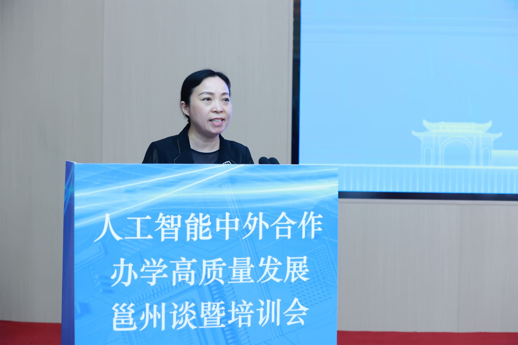 近日,人工智能中外合作办学高质量发展邕州谈暨培训会在南宁举办。会议由自治区教育厅主办、我校承办。自治区教育厅二级巡视员罗耀光,我校副校长龙妮娜出席会议并致辞。来自区内外的相关专家,自治区教育厅有关处室负责人,全区开设人工智能专业或中外合作办学项目的高校相关负责人参加会议。