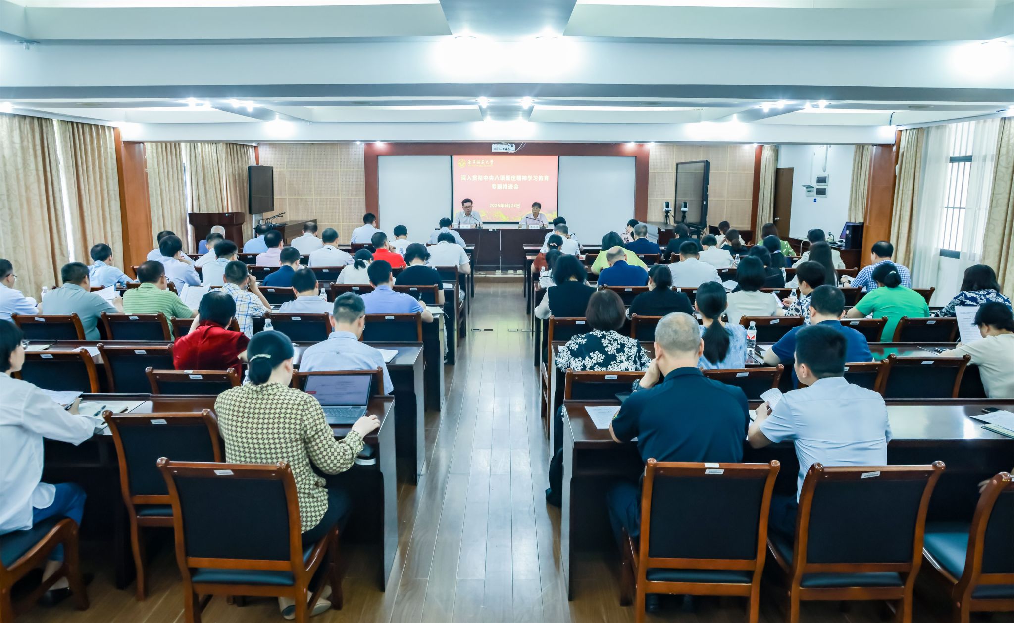 6月24日上午,我校在明秀校区鸿远楼409会议室召开深入贯彻中央八项规定精神学习教育专题推进会,总结前一阶段学校学习教育开展情况,通报自治区党委深入贯彻中央八项规定精神学习教育督导组对我校学习教育工作的阶段性反馈意见,部署学校下一阶段学习教育工作。学校党委书记张鹏出席会议并讲话,学校纪委书记李美清主持会议。学校学习教育工作专班全体成员、二级党委书记及机关、教辅部门负责人参加会议。