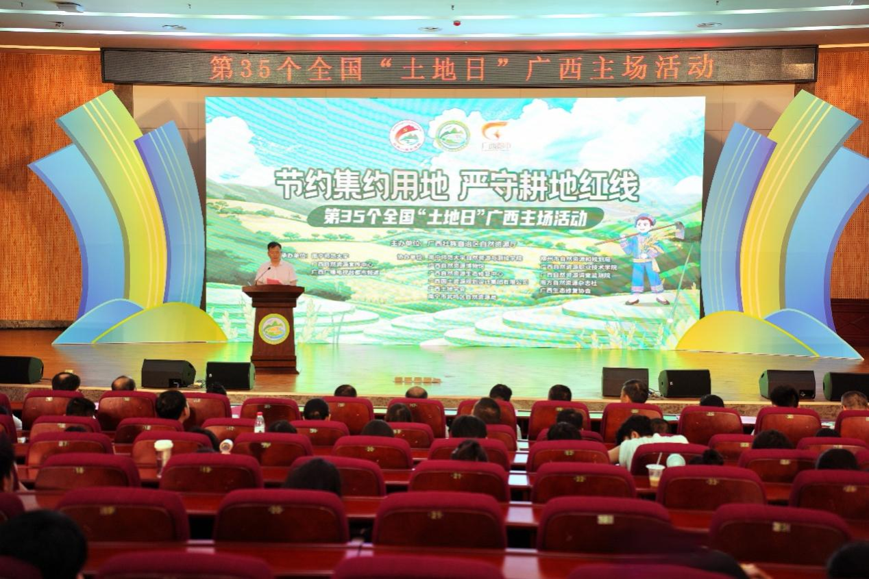 6月25日,为深入学习宣传贯彻习近平生态文明思想,引导全社会树立耕地保护、节约集约用地意识,由广西自然资源厅主办,我校和广西自然资源宣传中心、广西广播电视台都市频道承办的第35个全国“土地日”广西主场宣传活动在我校武鸣校区举行,我校副校长卢远出席活动并致辞。