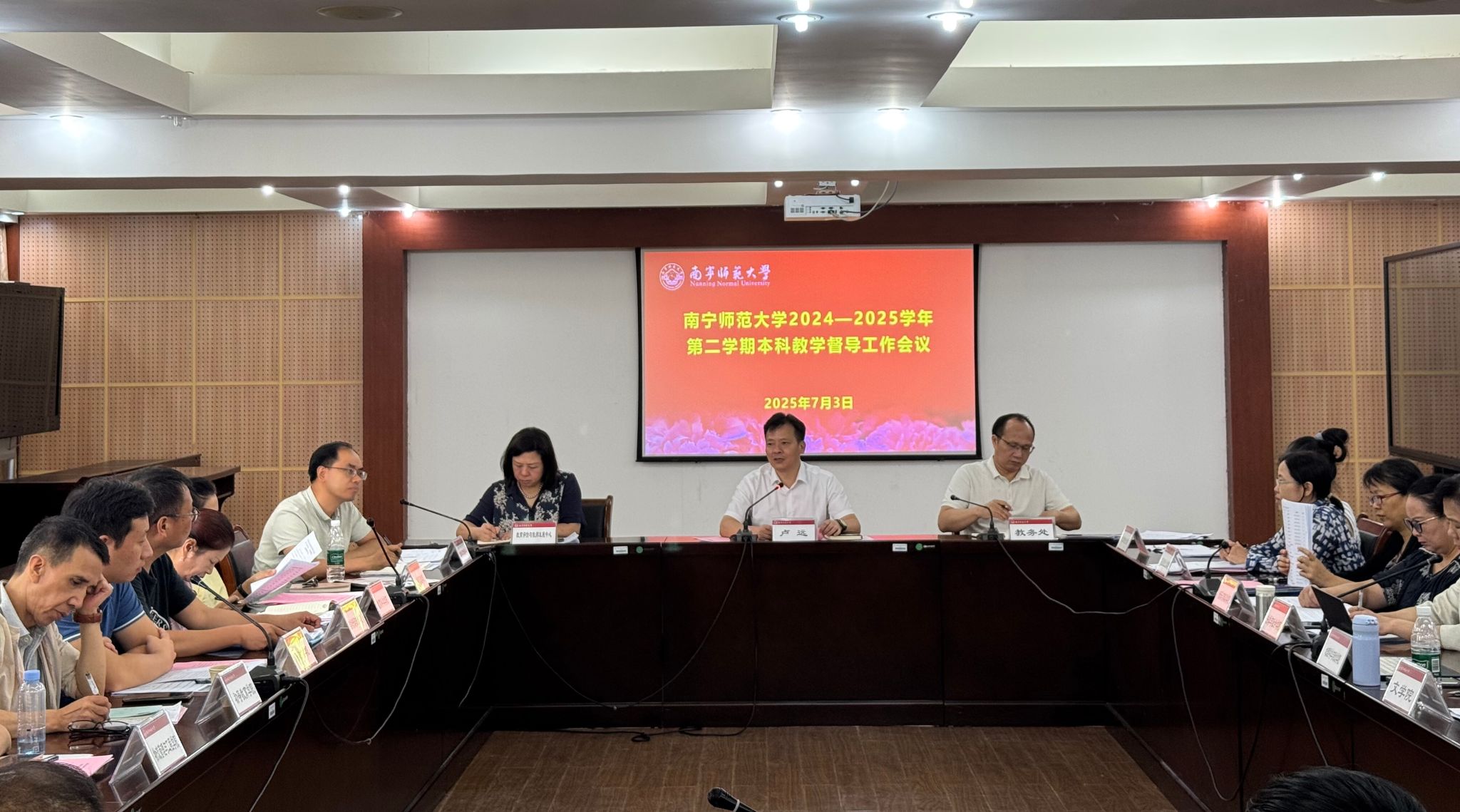 学校教学督导组组长、副组长对本学期教学督导工作进行了总结,全面梳理了督导听课、常规教学检查及专项督查等方面取得的成效与发现的问题,分析了问题原因,提出了改进建议。教育教学质量监控与评价中心交流了新学期教学督导工作的初步计划与重点方向,展示了AI生成的课堂质量分析报告案例,并请参会督导就“评学”“评教”的改进提出建议。教务处对新学期本科教育教学管理工作提出了要求。与会人员还就《南宁师范大学本科教育教学督导工作管理办法(2025年修订)(征求意见稿)》《南宁师范大学课堂听课记录卡(2025年修订)(征求意见稿)》进行了充分研究讨论。