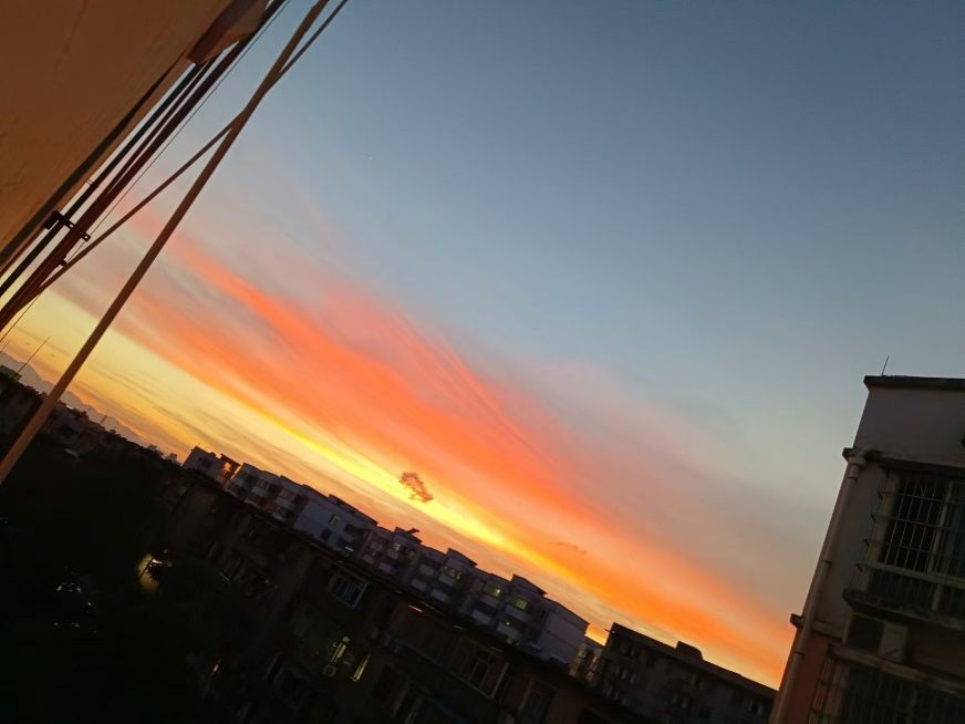 说来也不知该高兴还是惋惜,注意到夕阳和霞光的时间,绝大部分都在校园中。高兴的是,略显枯燥的学习生活中仍有一抹艳霞始终相伴;惋惜的是,除去校园生活期间,我很少抬头望天,去追寻这位晚霞朋友的身影。是什么让我发现你的美,又是什么让我遗忘你?我不想过多纠缠于此,且让我回忆我与你相见的点滴种种。