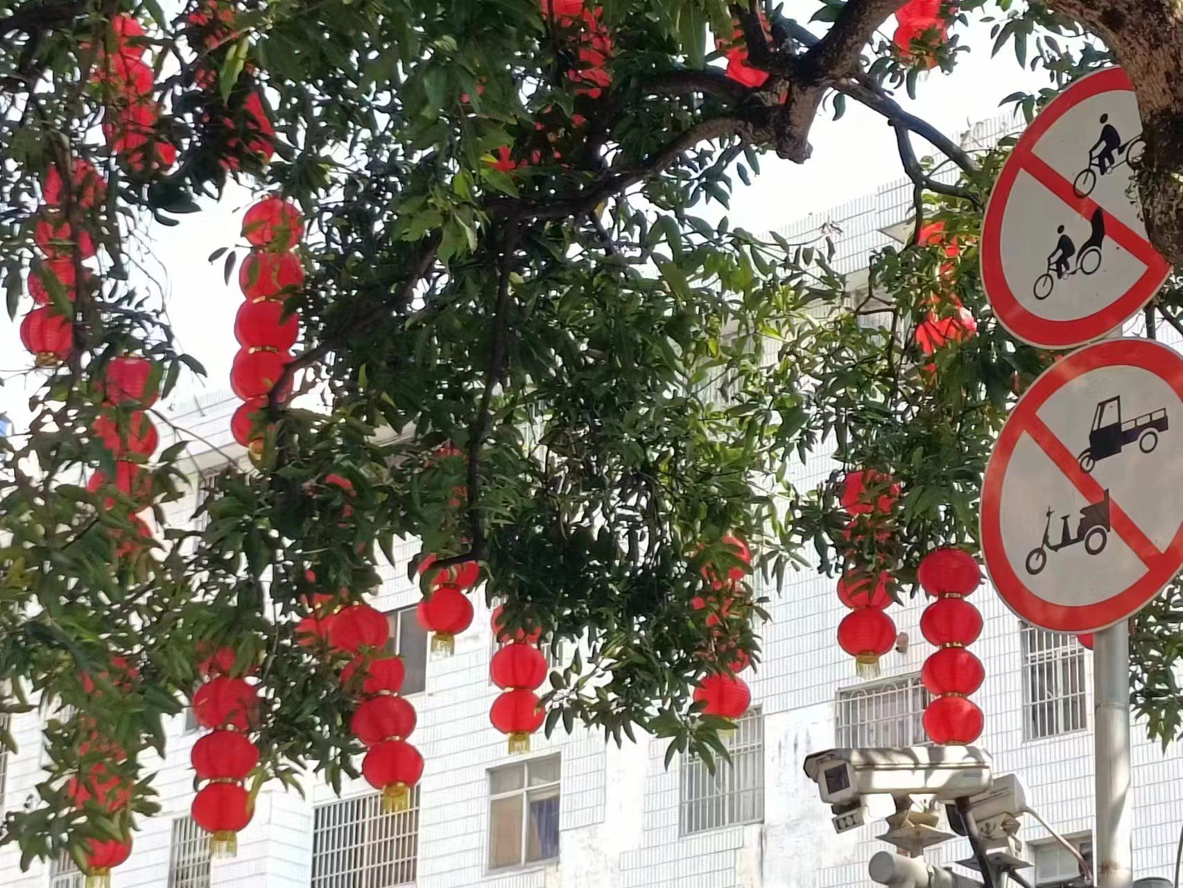 在街道上闲逛之时,目光所及之处挂满了在风中摇晃的灯笼,那枝桠上挂着的一串串灯笼,洋溢着对新的一年的期盼和梦想。