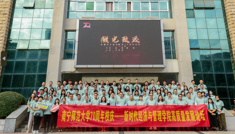 弦歌不辍,薪火相传。在学校开展建校70周年庆祝系列活动之际,经济与管理学院于12月30日举办新时代经济与管理学院高质量发展论坛,来自国内外的70名校友、合作单位代表回到南宁欢聚一堂,共叙情谊、共谋发展、共话未来,纪明书记、韦海鸣院长率学院班子成员、各系主任、各系教师代表、部分退休教师、学生代表参加了论坛活动。