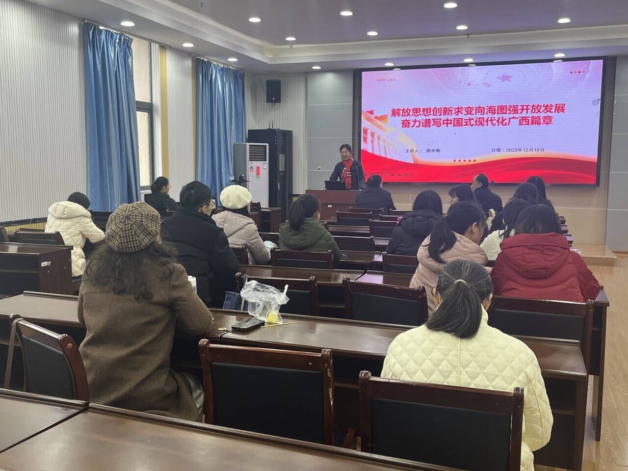 2023年12月19日,教育科学学院教育学教工支部在五合校区理科综合楼1003会议室举行学习宣传贯彻习近平总书记视察广西重要讲话精神教育培训活动,全体教育学系教师党员参会。培训活动由教育学系支部书记熊孝梅教授主持。