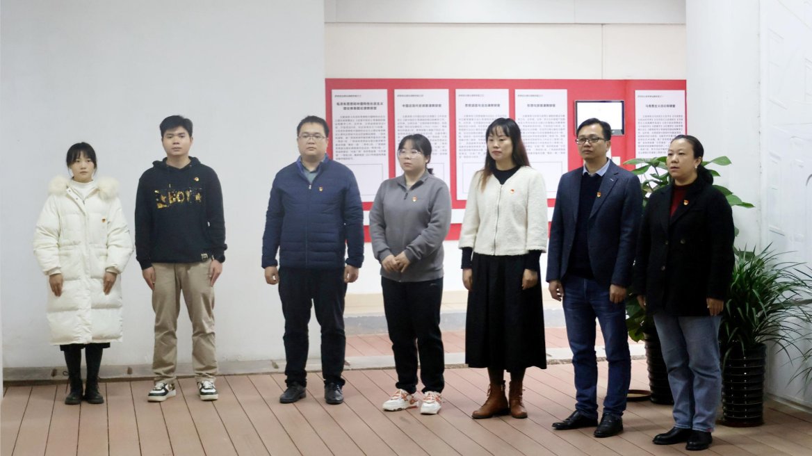 马克思主义学院新发展党员入党宣誓仪式于1月9日在五合校区8栋B座2楼马克思主义理论教育广场隆重举行。出席本次活动的有马克思主义学院党委书记李玲、党委副书记黄志海、马克思主义基本原理研究生党支部书记姜黎黎、本科生第一党支部书记李夏阳、本科生第四党支部书记张万景、本科生第五党支部书记王玉香、辅导员黄业毅以及新发展党员们。