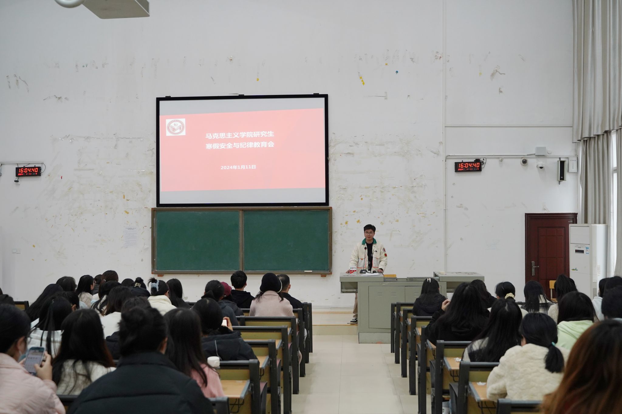 马克思主义学院于2024年1月11日下午在五综308教室召开全体研究生大会,会议由黄业毅老师主持。