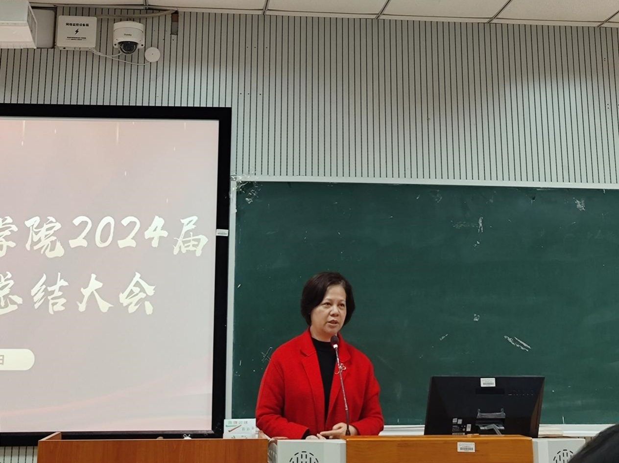 大会伊始,学院党委书记李穗书记老师讲话,她代表学院真诚感谢实习带队老师的辛勤付出和祝贺2024届硕士毕业生圆满完成实习工作。同时,她对毕业生们提出了三点希望:一是要做好职业定位,统筹协调;二是要随时关注就业信息,尽快落实就业去向;三是要做好接受失败的准备,及时调整再出发。