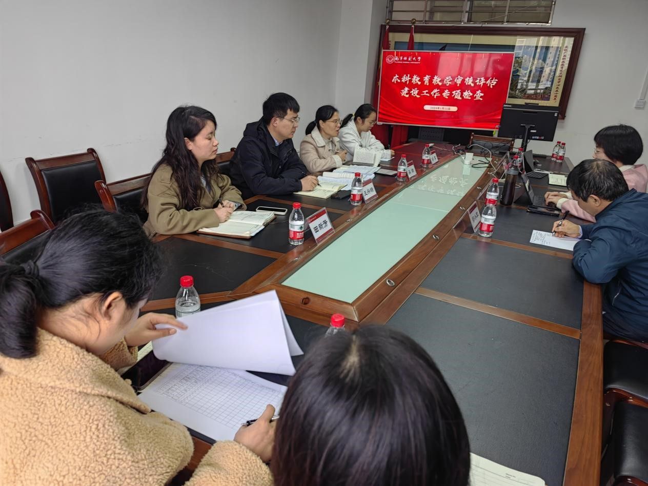 会议伊始,蓝洁副院长根据《关于开展本科教育教学审核评估建设工作专项检查的通知》(评建办发[2024]1号)要求,对学院层面的教学管理制度建设情况、学院自评报告及支撑材料、学院专业建设与发展规划、专业质量分析报告、人才培养方案、课程教学大纲、教学档案进展等情况进行汇报。