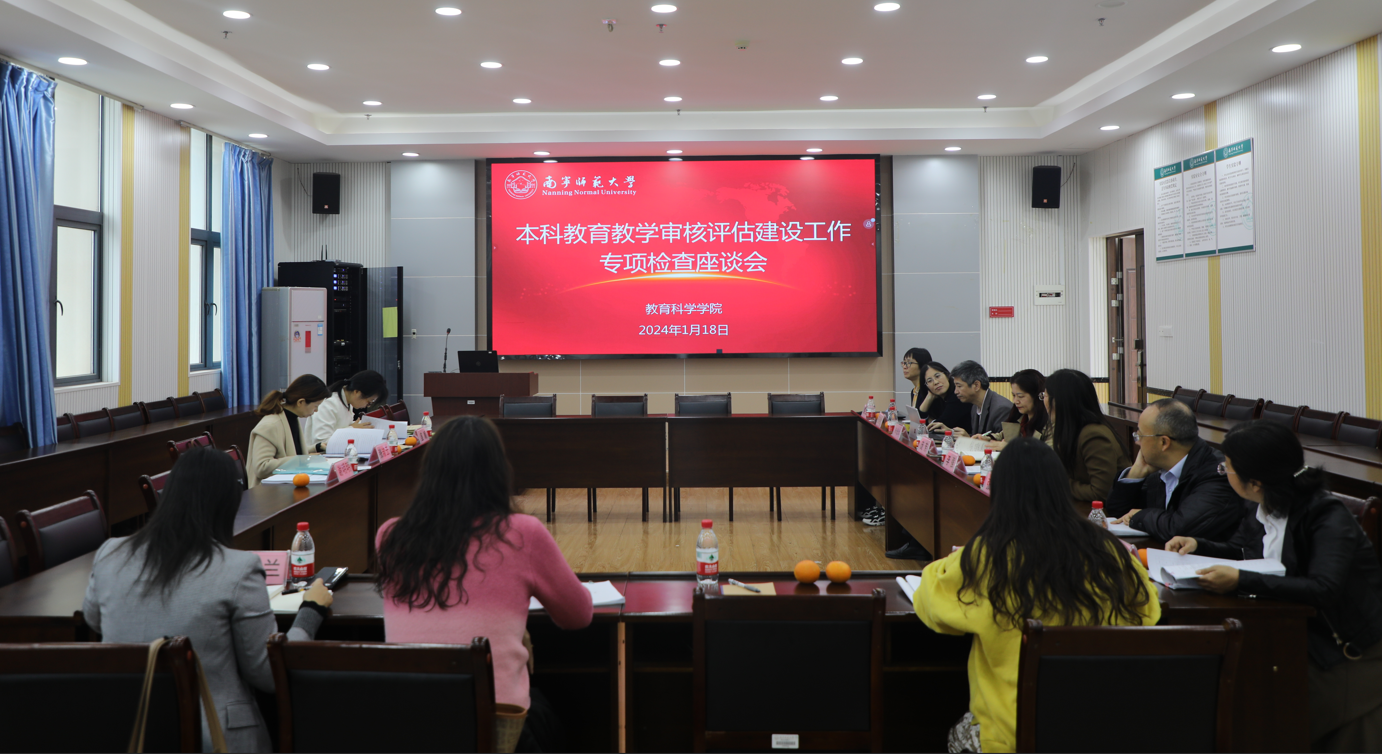 为确保学校新一轮本科教育教学审核评估工作有序推进,1月18日上午,教务处副处长张淑云带领教育评价与教师发展中心盖顺老师到教育科学学院进行专项检查并开展座谈会,我院党委书记庞芳、副院长张瑞、教育学部办公室主任杨进红、公共教学部主任张勇、各系正副系主任和教学秘书参加专项检查的座谈会。