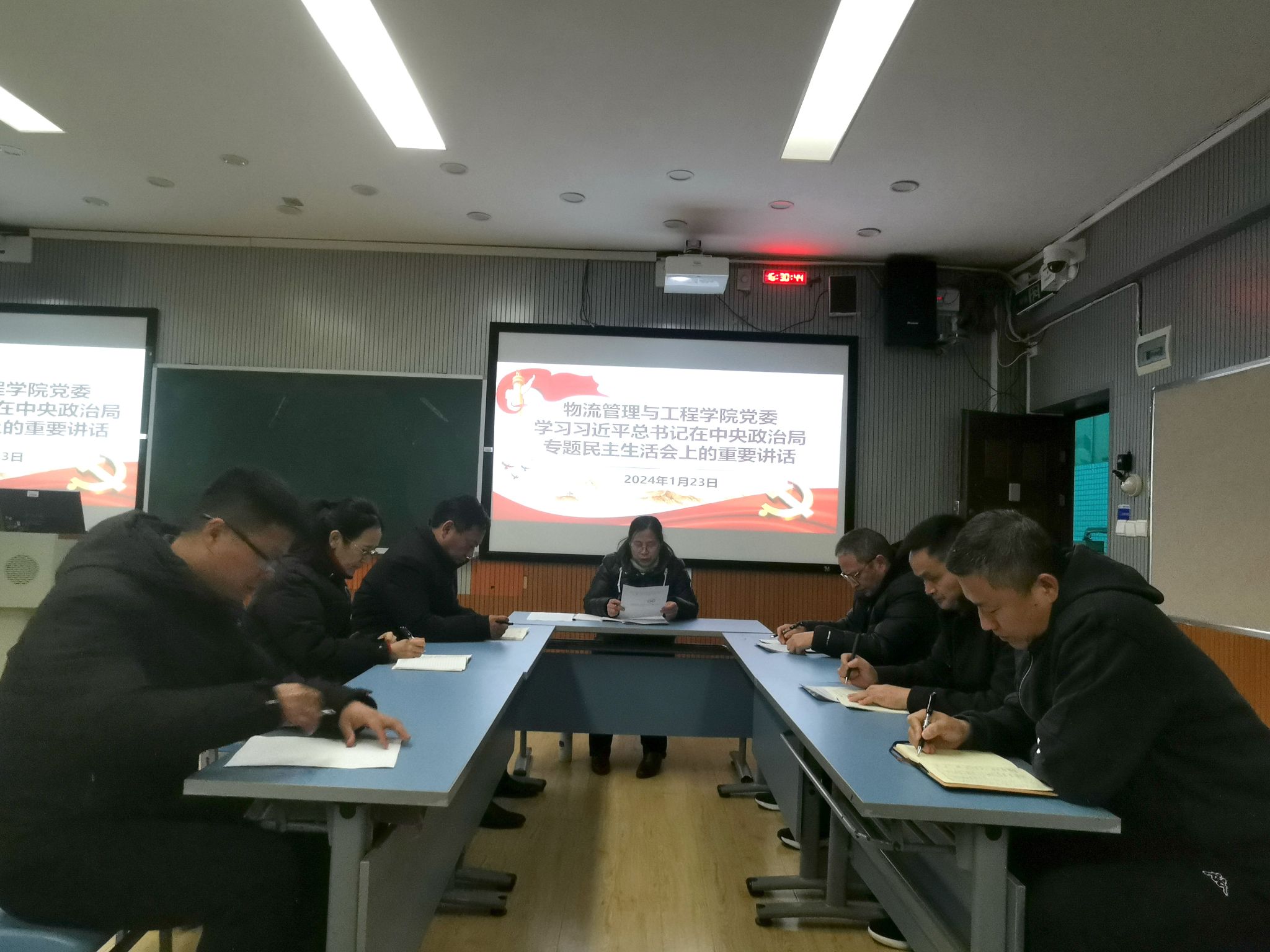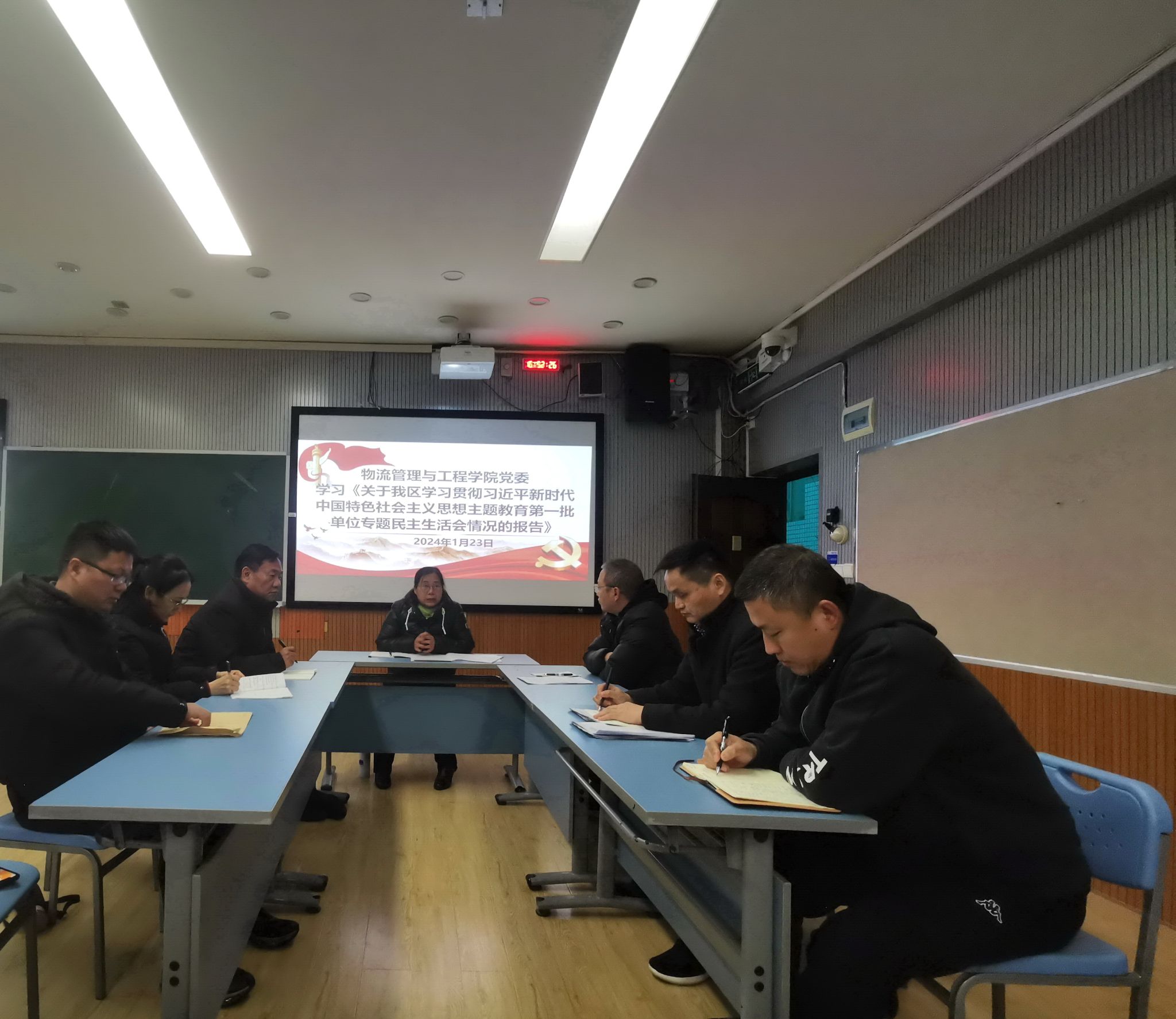 1月23日下午,物流管理与工程学院在明秀校区文星楼401召开会议,组织学习习近平总书记在中央政治局主题教育专题民主生活会上的重要讲话,《关于我区学习贯彻习近平新时代中国特色社会主义思想主题教育第一批单位专题民主生活会情况的报告》。会议由物流管理与工程学院党委书记陈兵主持,学院领导班子参加会议。