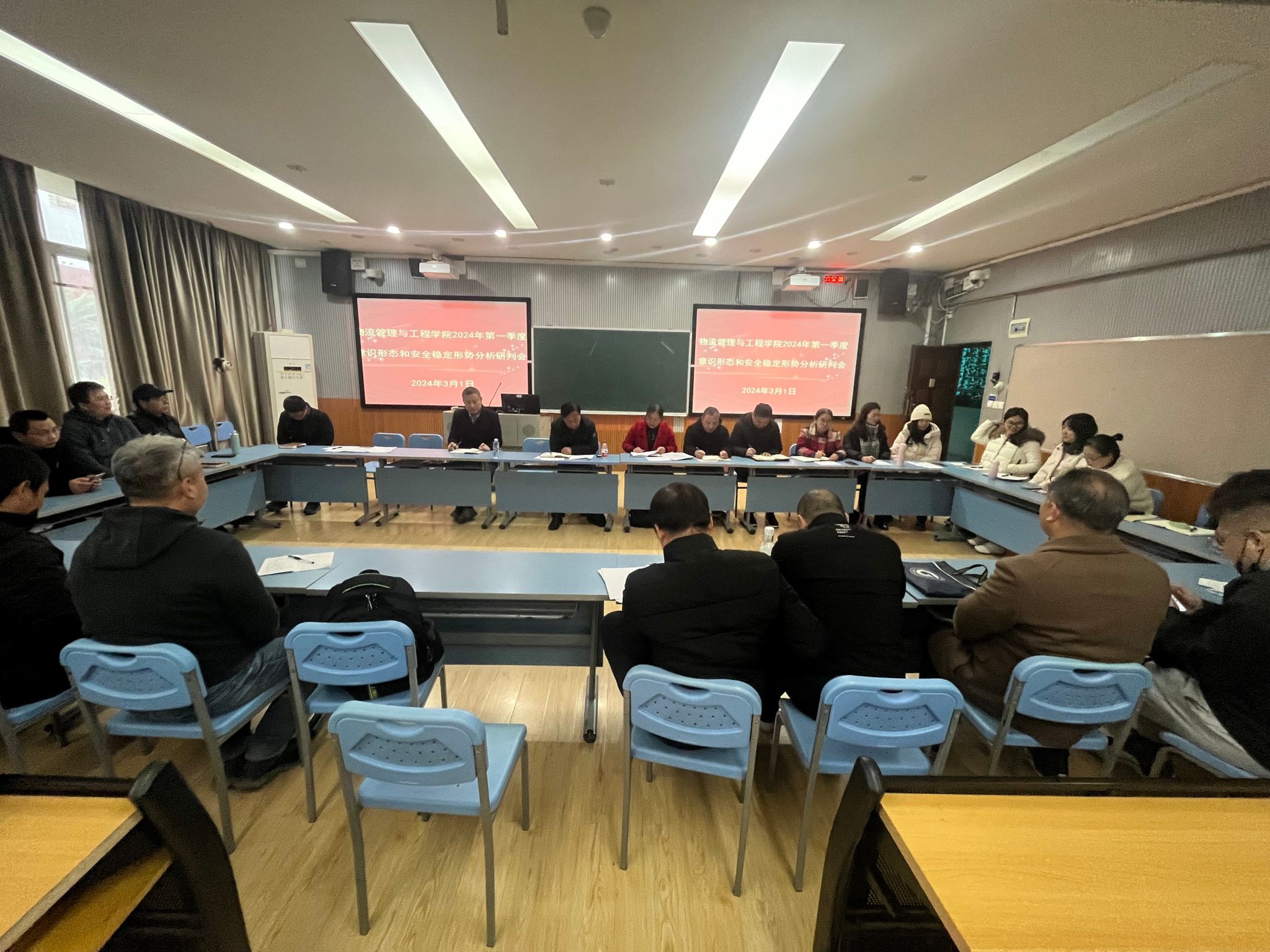 3月1日下午,物流管理与工程学院在明秀校区文星楼401召开了2024年第一季度意识形态和安全稳定形势分析研判会,会议由物流管理与工程学院汪德荣院长主持,全体教职工参加。